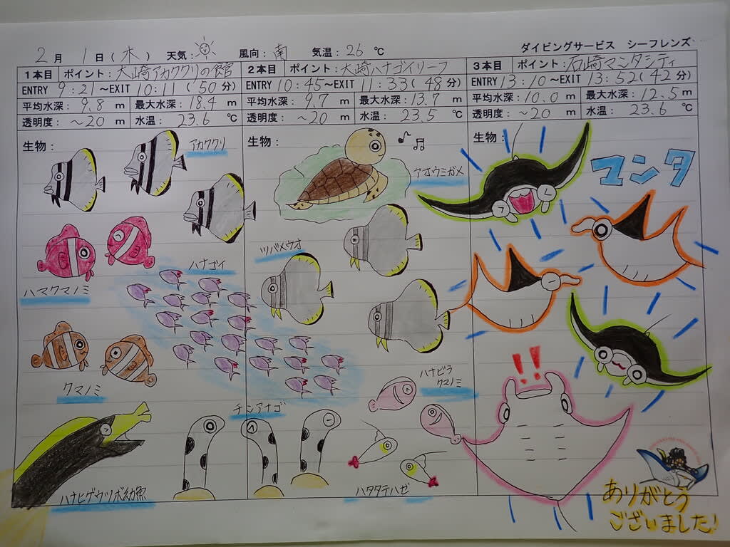 マンタは最後のお楽しみにして、始めは大崎エリアで潜ります!