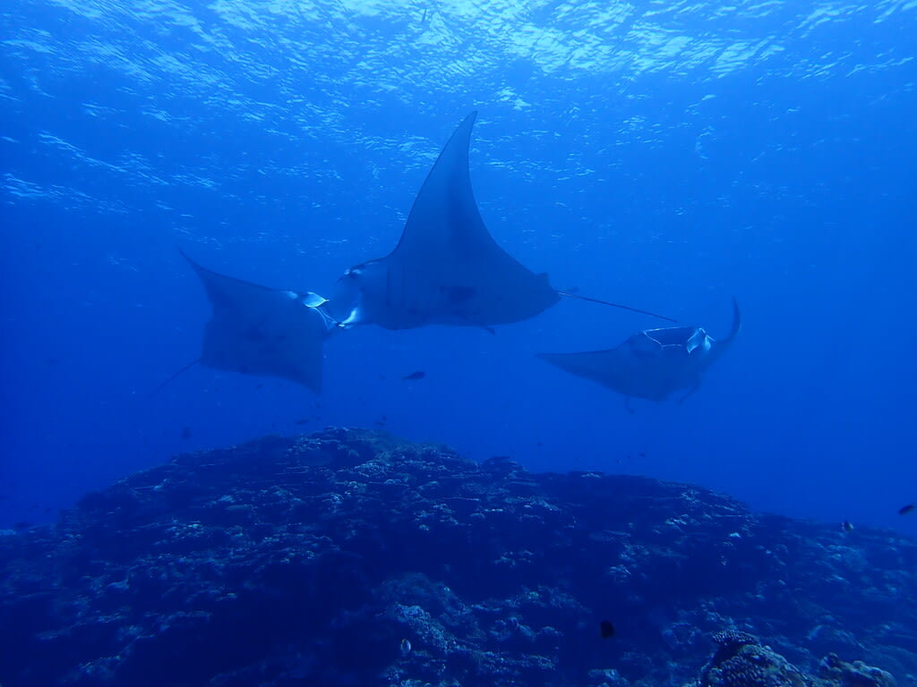 増えたり減ったりを繰り返しながら、4、5枚のマンタがグルグル!