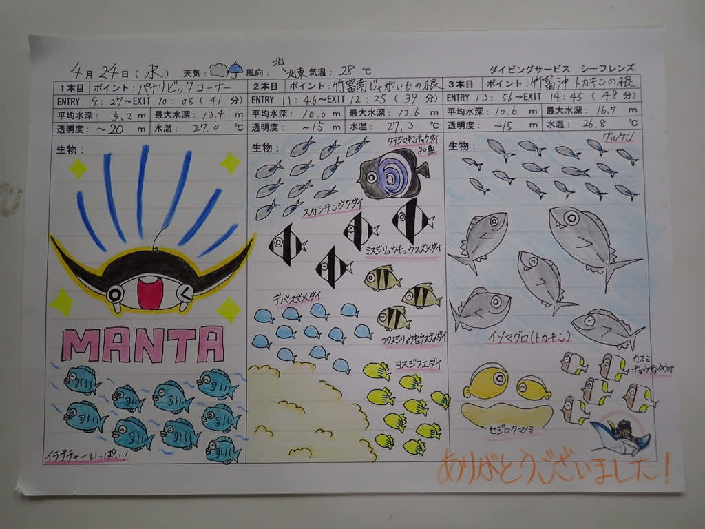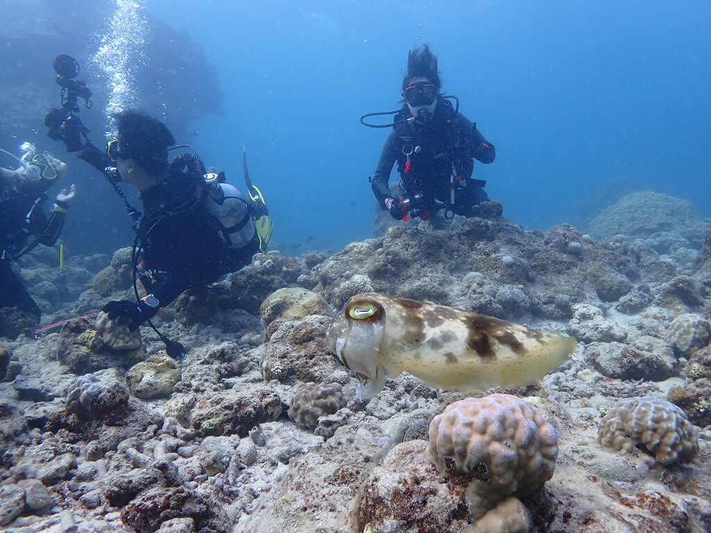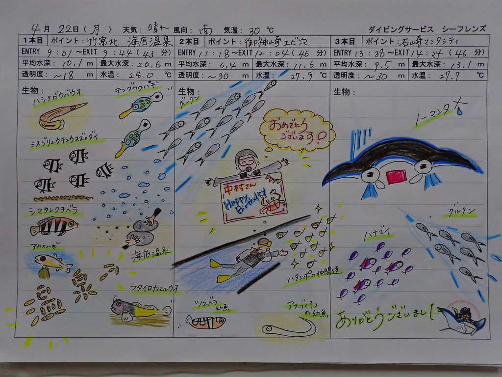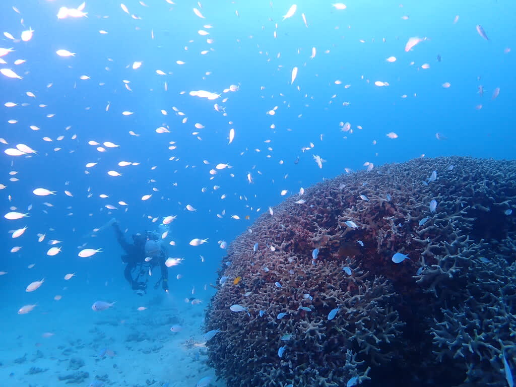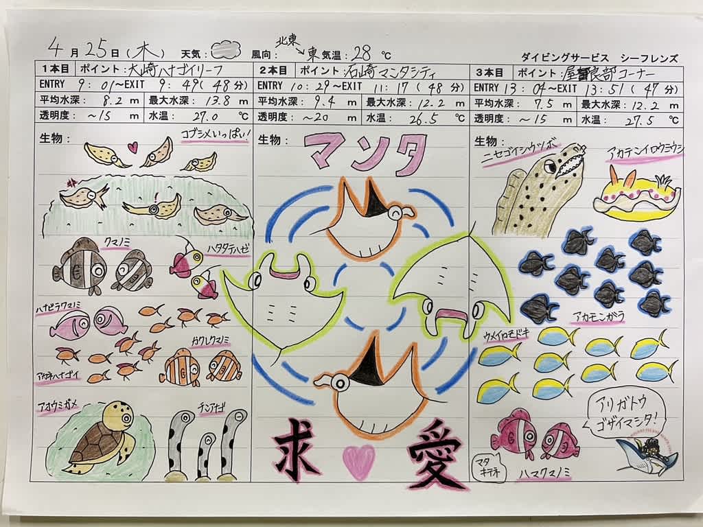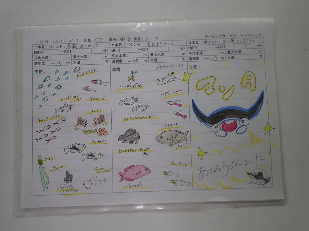 前半は、ノコギリダイやブダイの群れを観察したり(^^♪