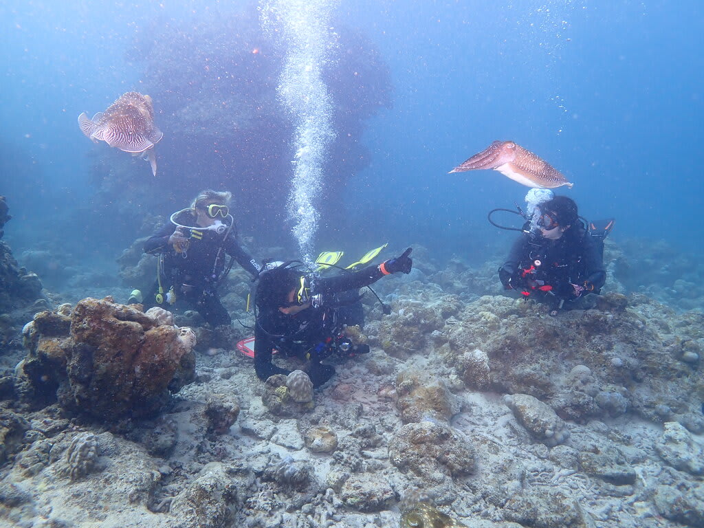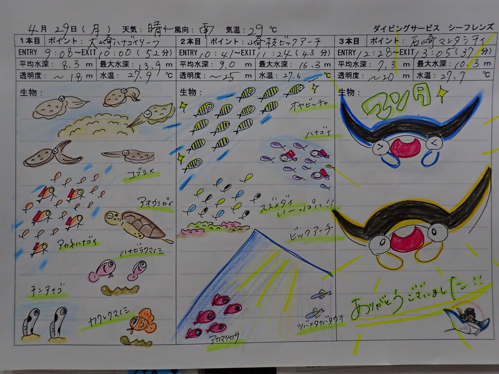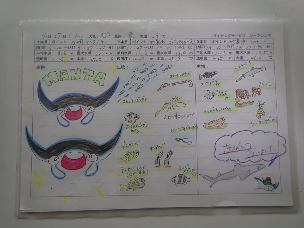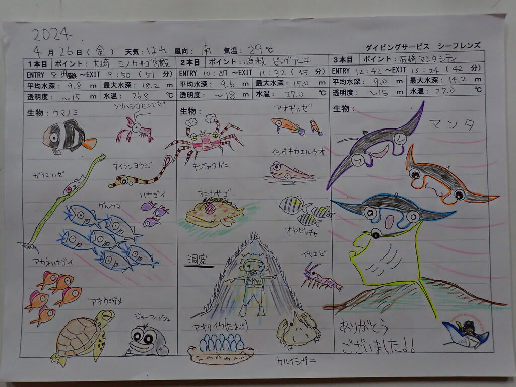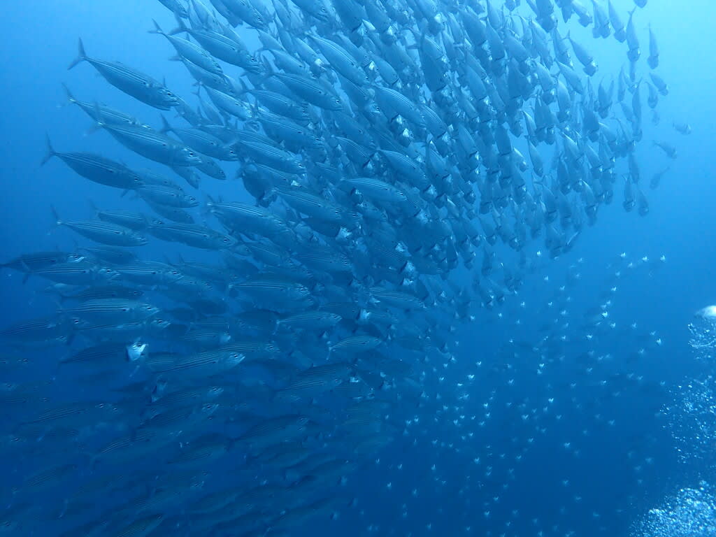 前半は、ノコギリダイやブダイの群れを観察したり(^^♪