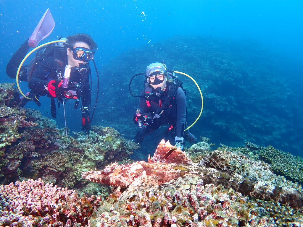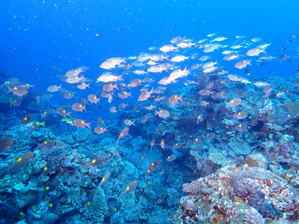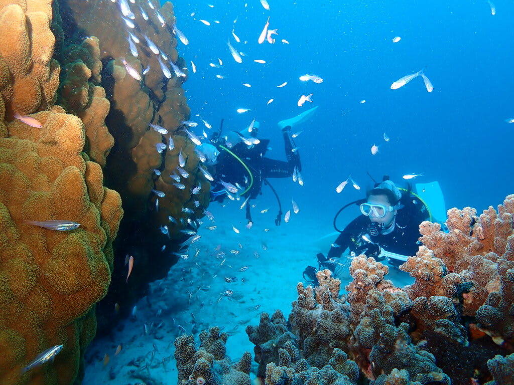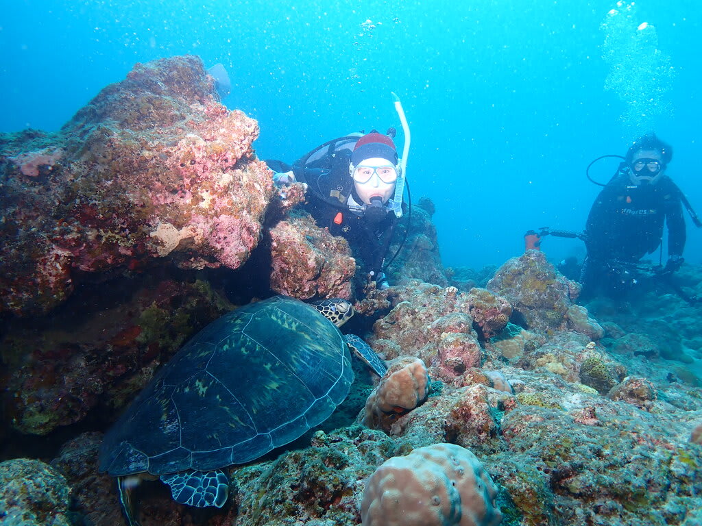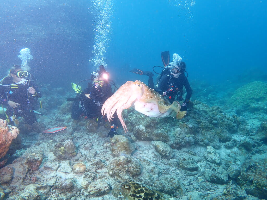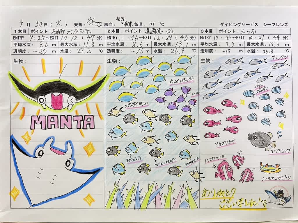 前半は、ノコギリダイやブダイの群れを観察したり(^^♪