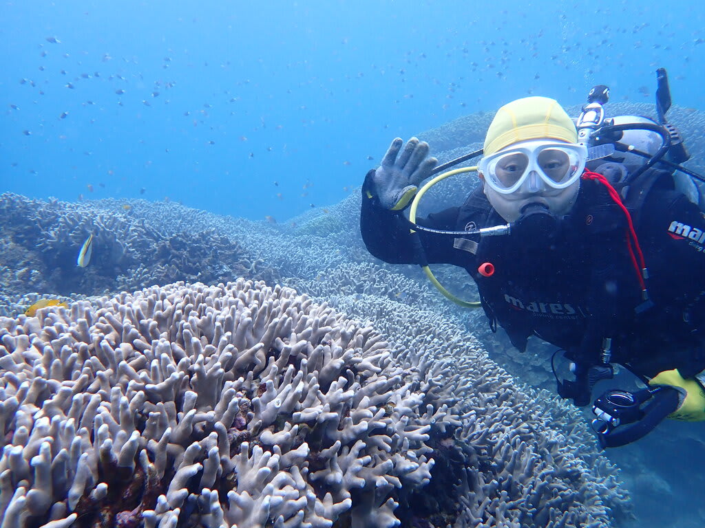 最後は、名蔵のサンゴの上で癒やしのダイビングです。