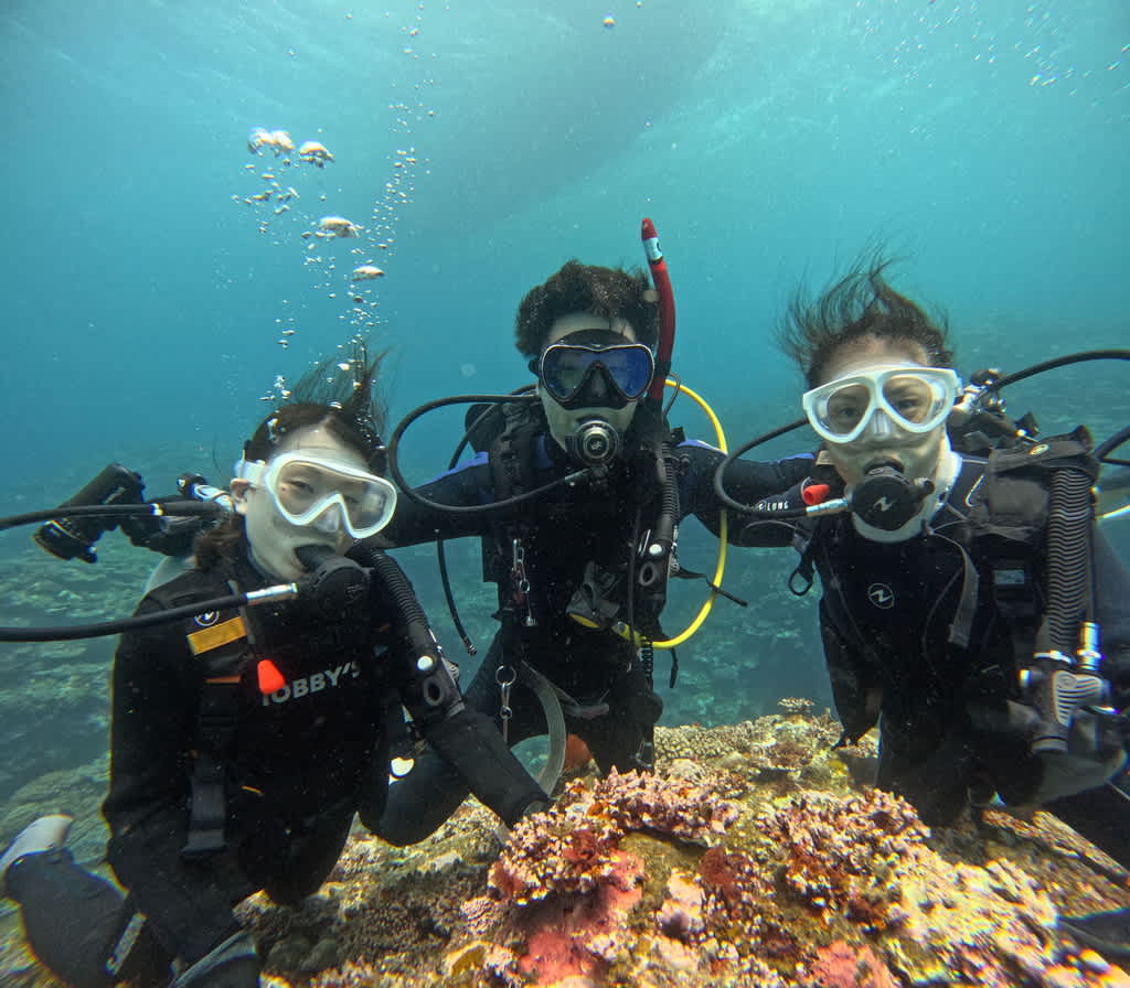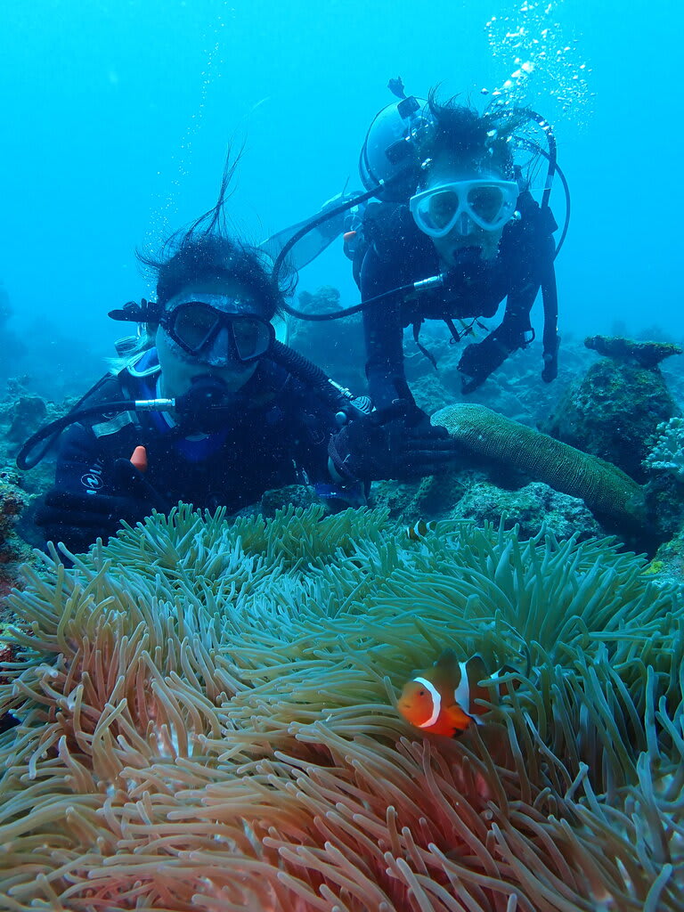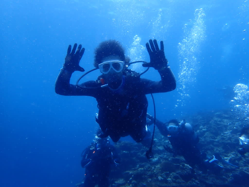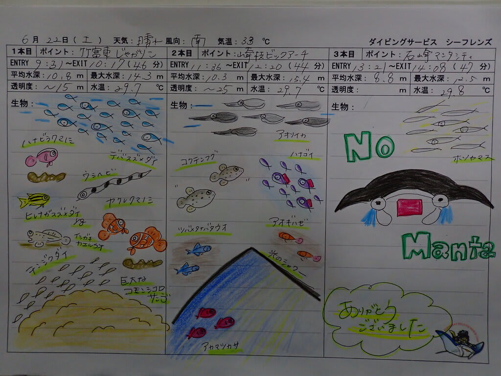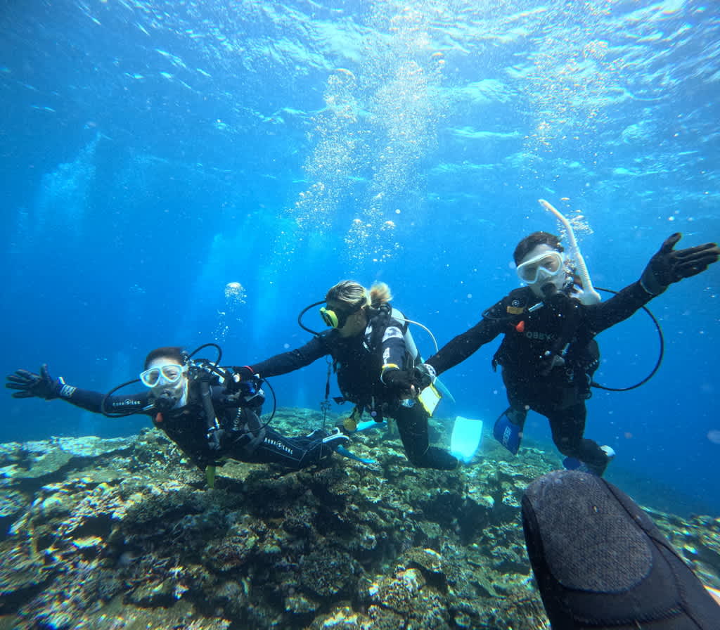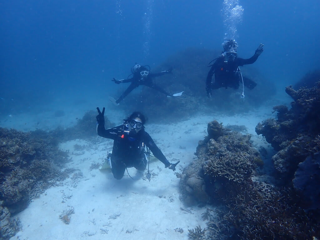 水中は、サンゴがモリモリ、お魚がフワフワ、人間もワイワイ楽しみました!!