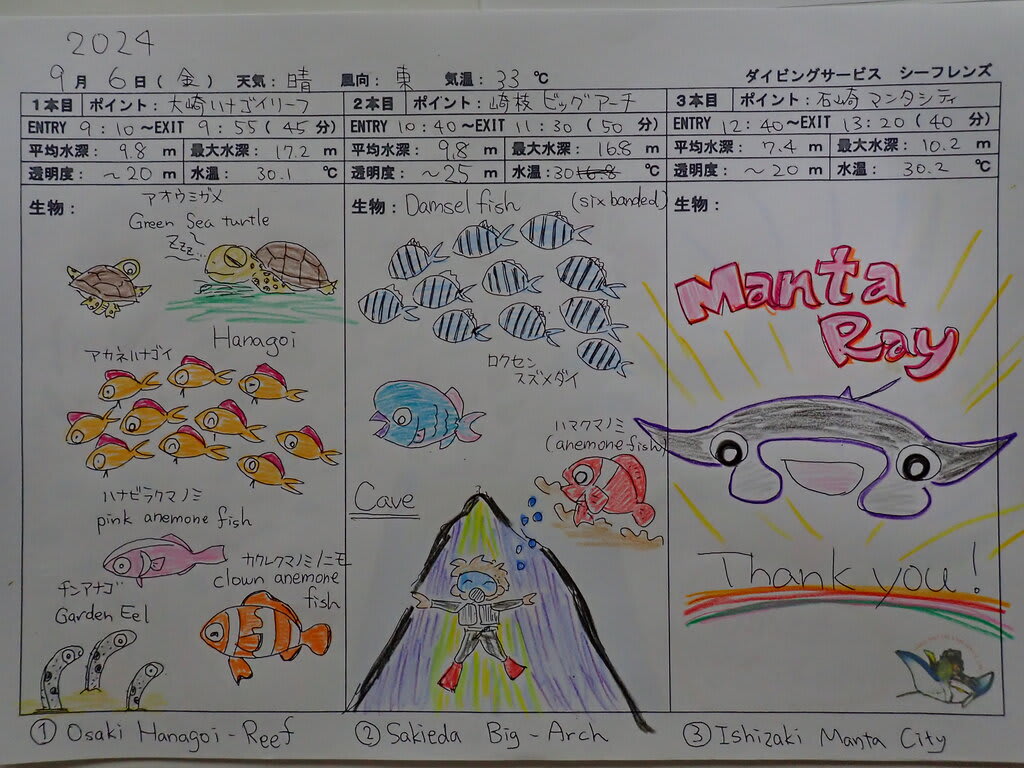 < 石垣島シーフレンズの海情報/日記 >