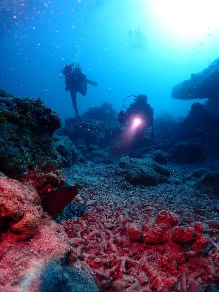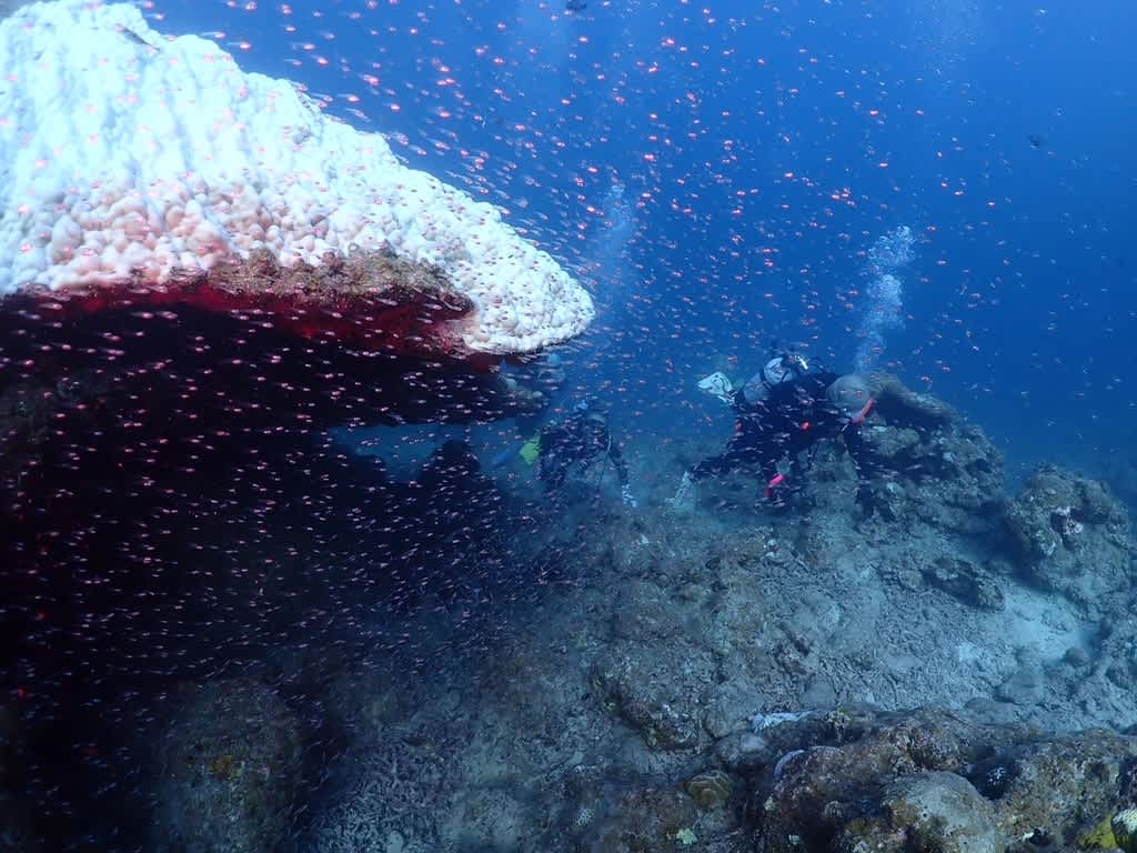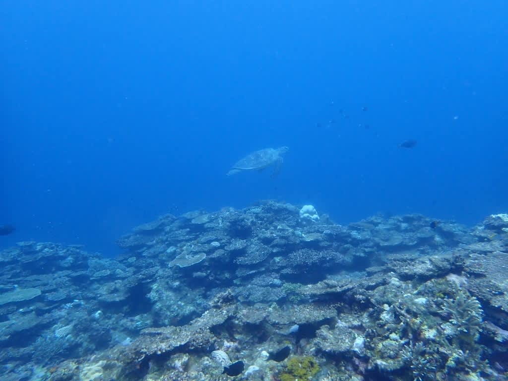 スムーズに潜行し、水中を散歩していると早速カメに遭遇!