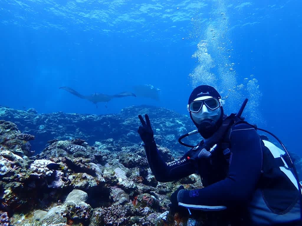 何度も目の前を通過してくれるマンタに大興奮させてもらいました!