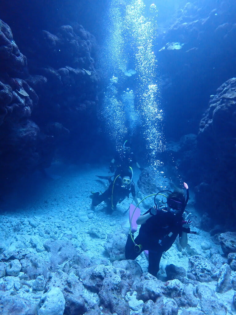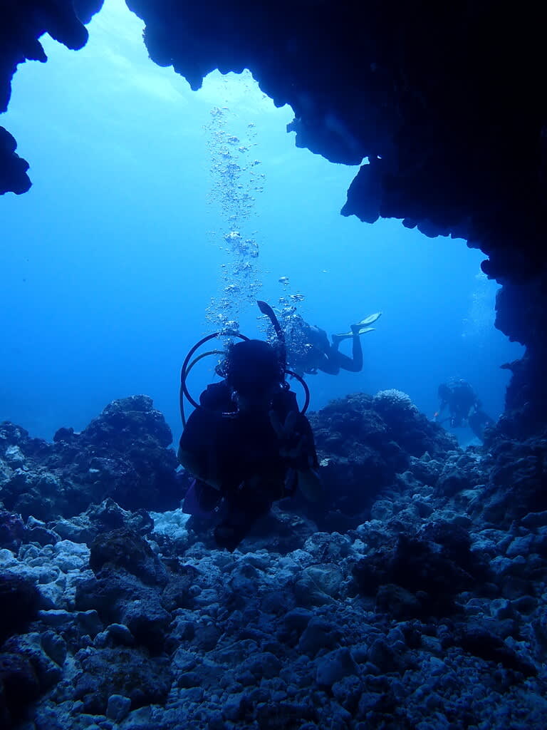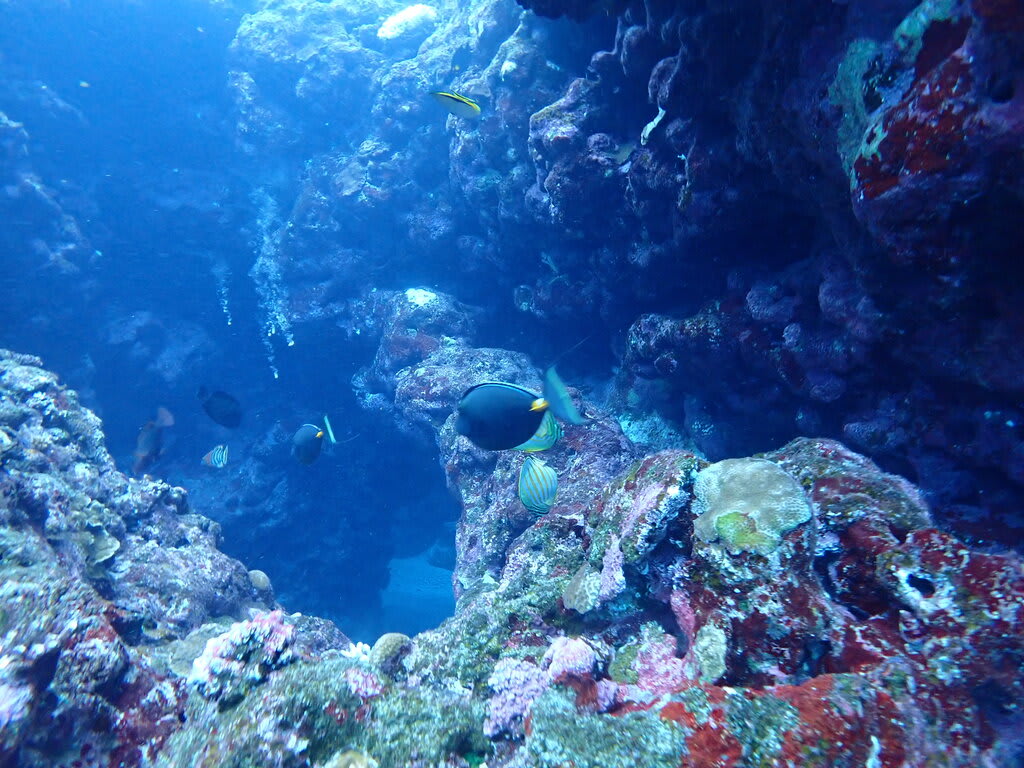 沖合では、狭いところを通ったりして、地形のダイビングを。
