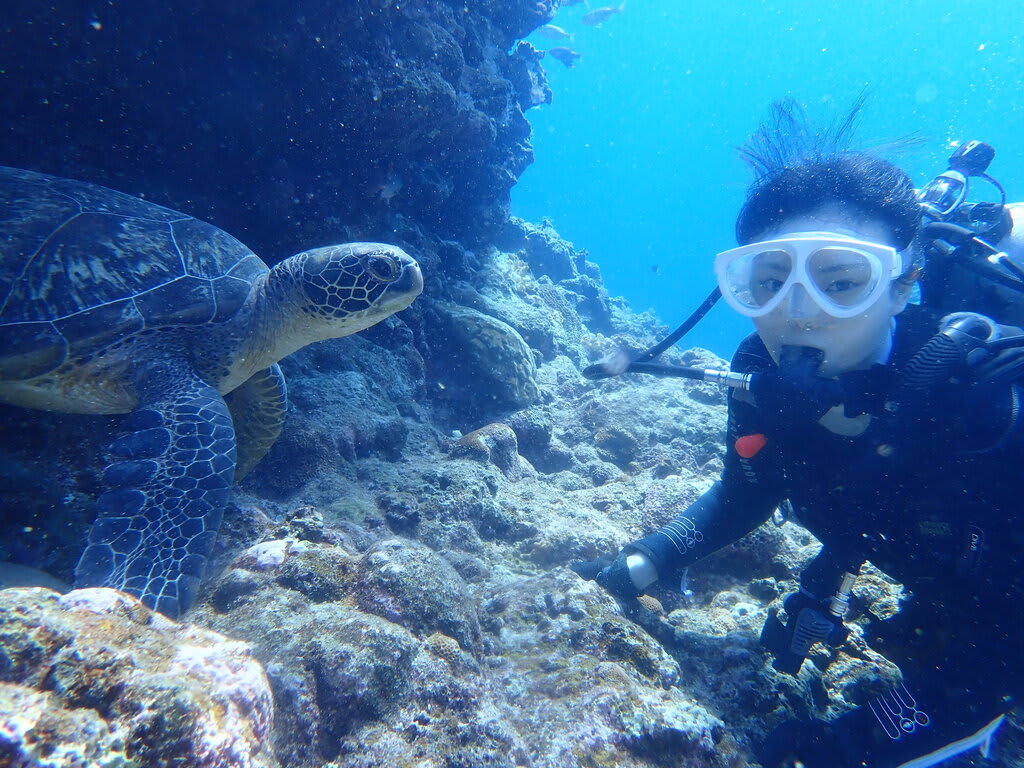 圧倒的な透明度と魚の多さが、石垣デビューを飾りました。