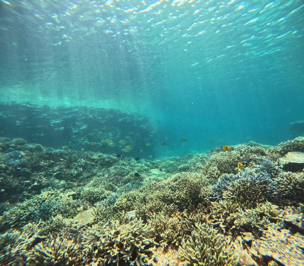 広い白い砂地に、程よく岩がちりばめられ、その岩がまるで盆栽のようにサンゴが点在。