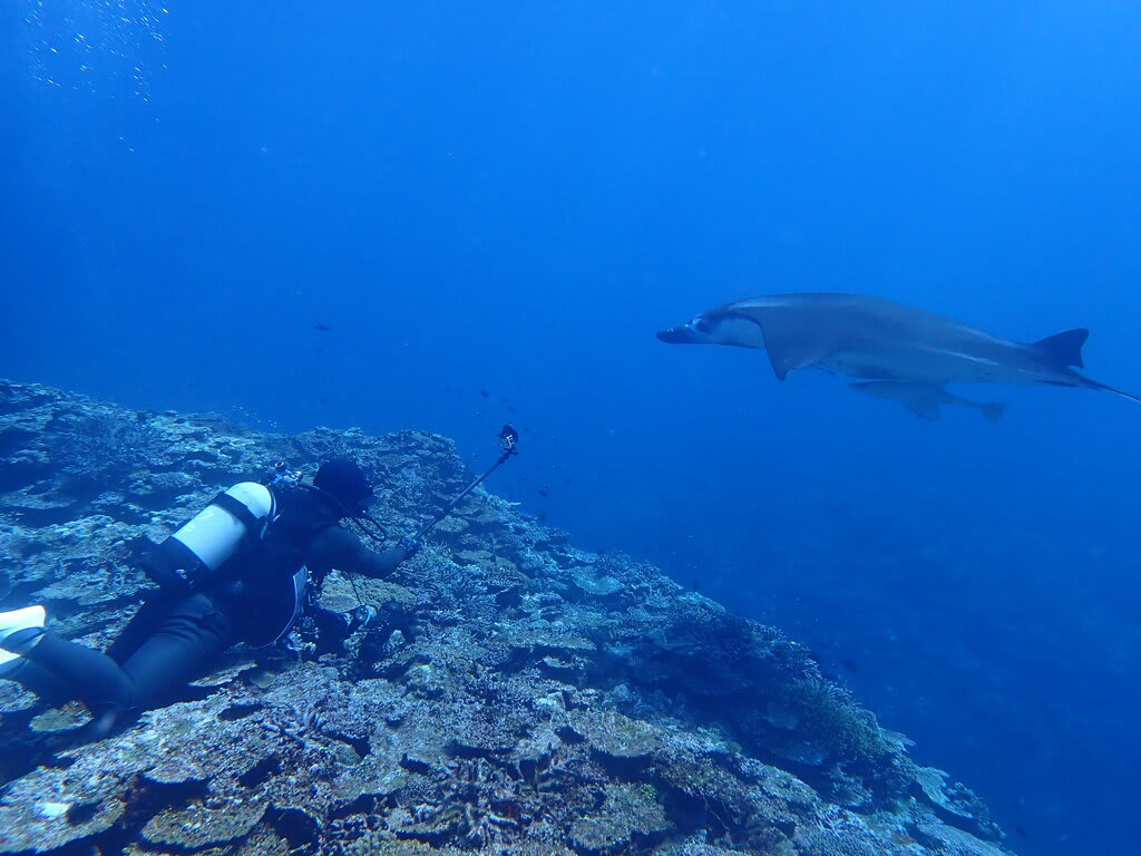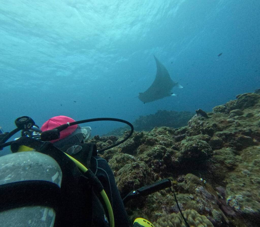一瞬でした!根の向こうからマンタが来て通り過ぎました😅