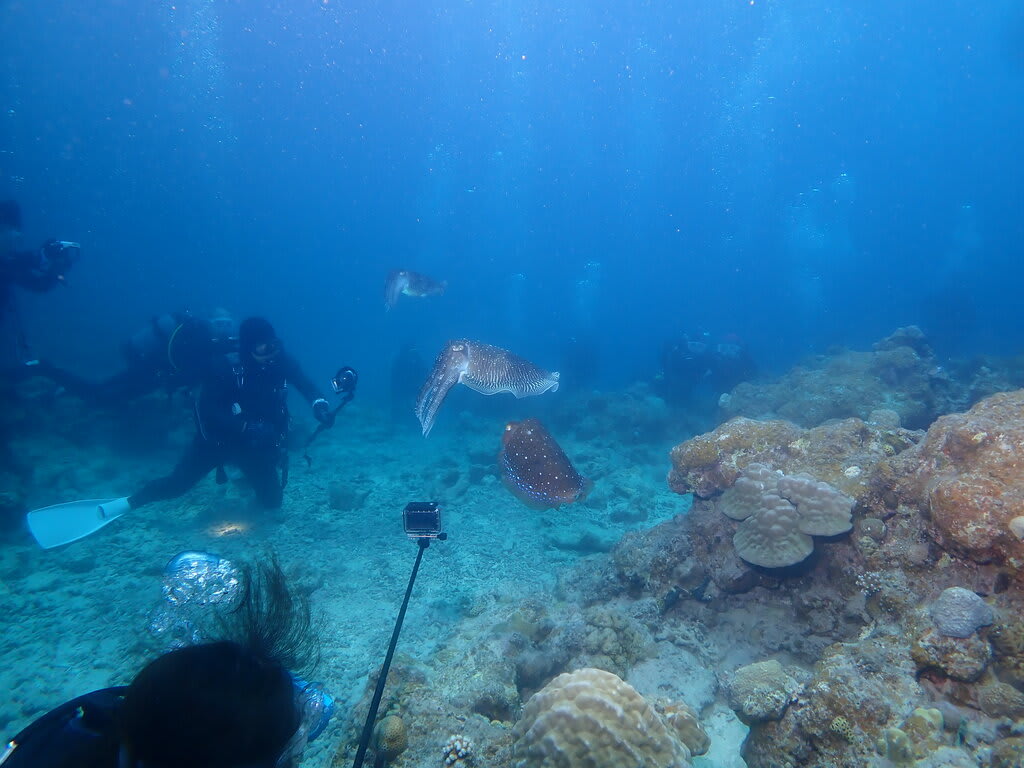 大崎ハナゴイリーフで、コブシメ、ウミガメ。