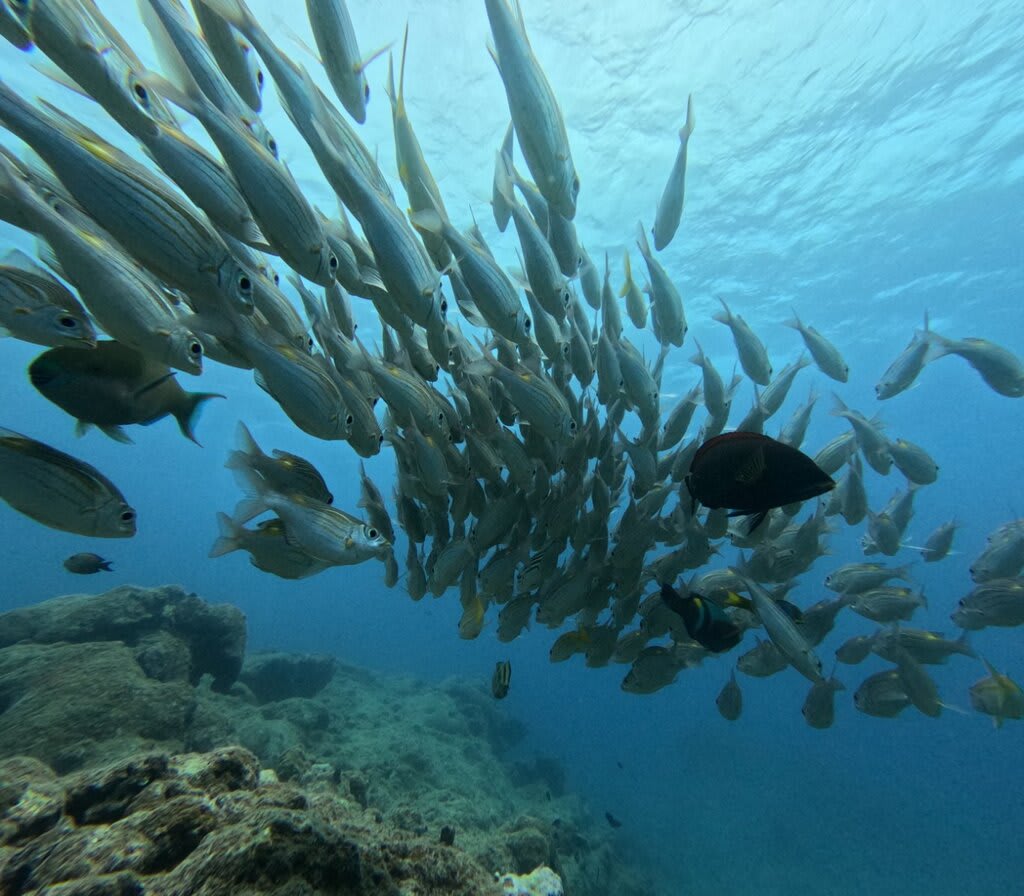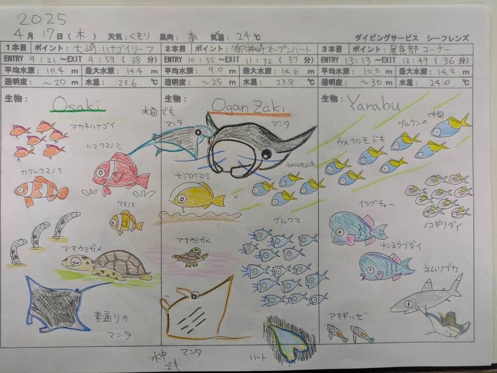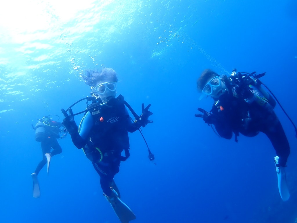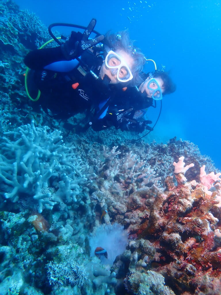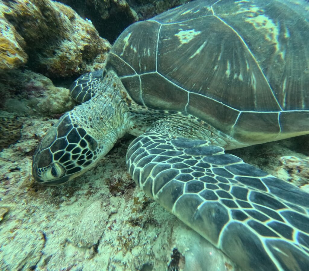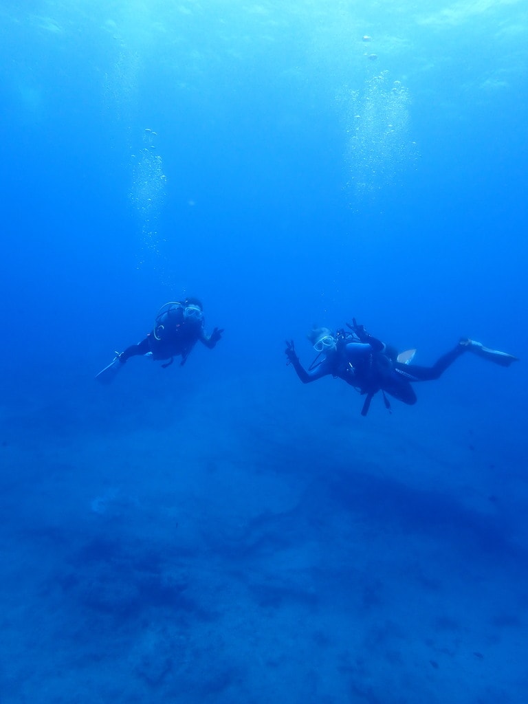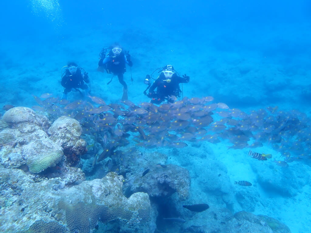 ダイビングとダイビングの間の休憩で、スノーケルを。