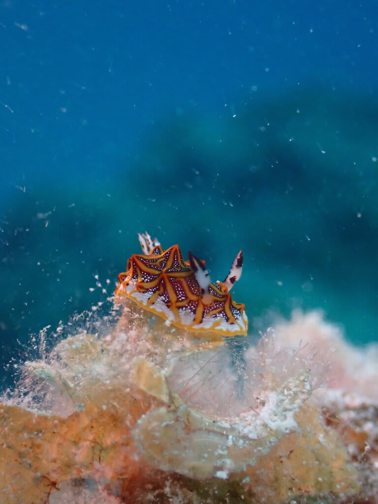 フラットな白い砂地で、ワイドに景色を見たり、マクロの視点で生き物を見たり。