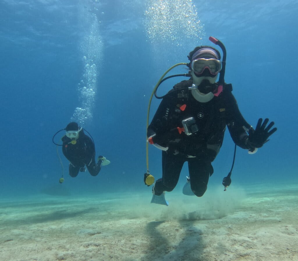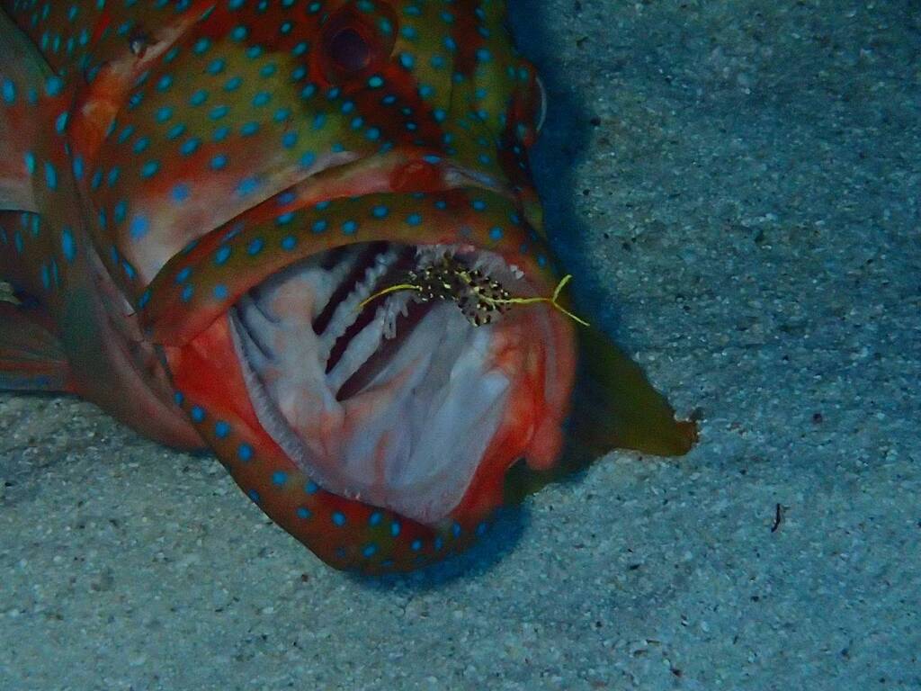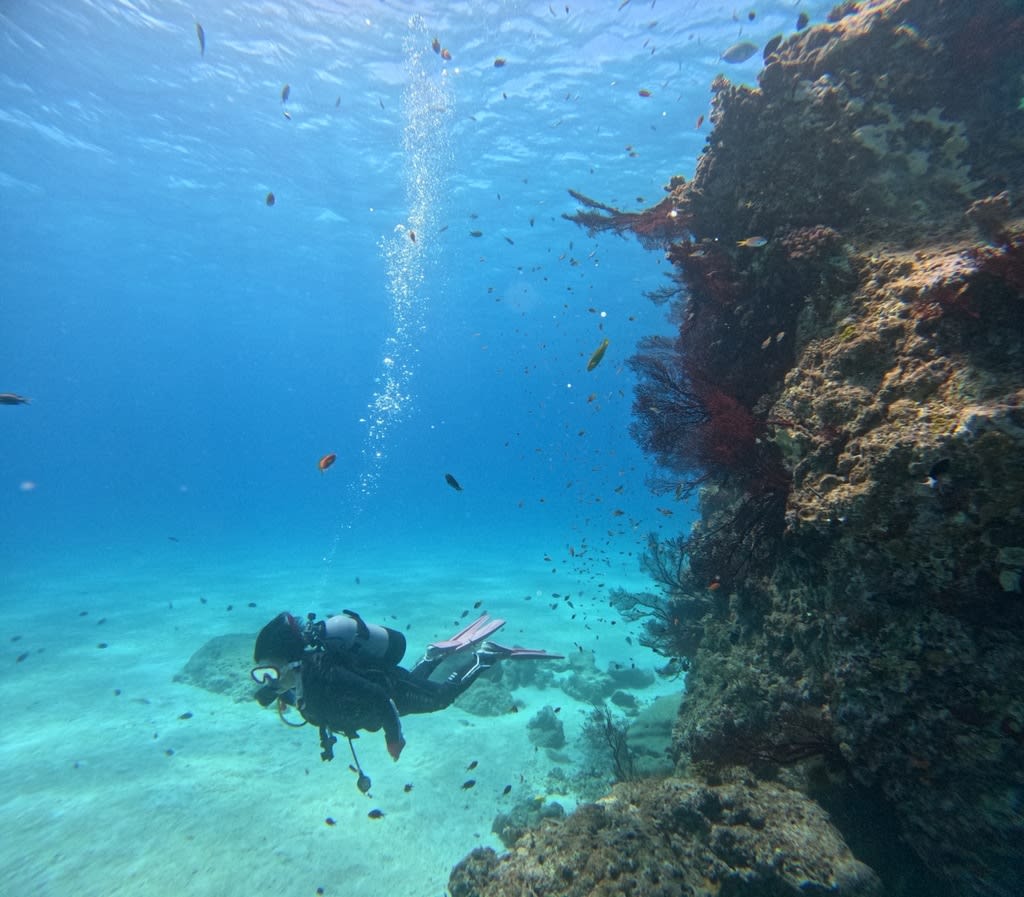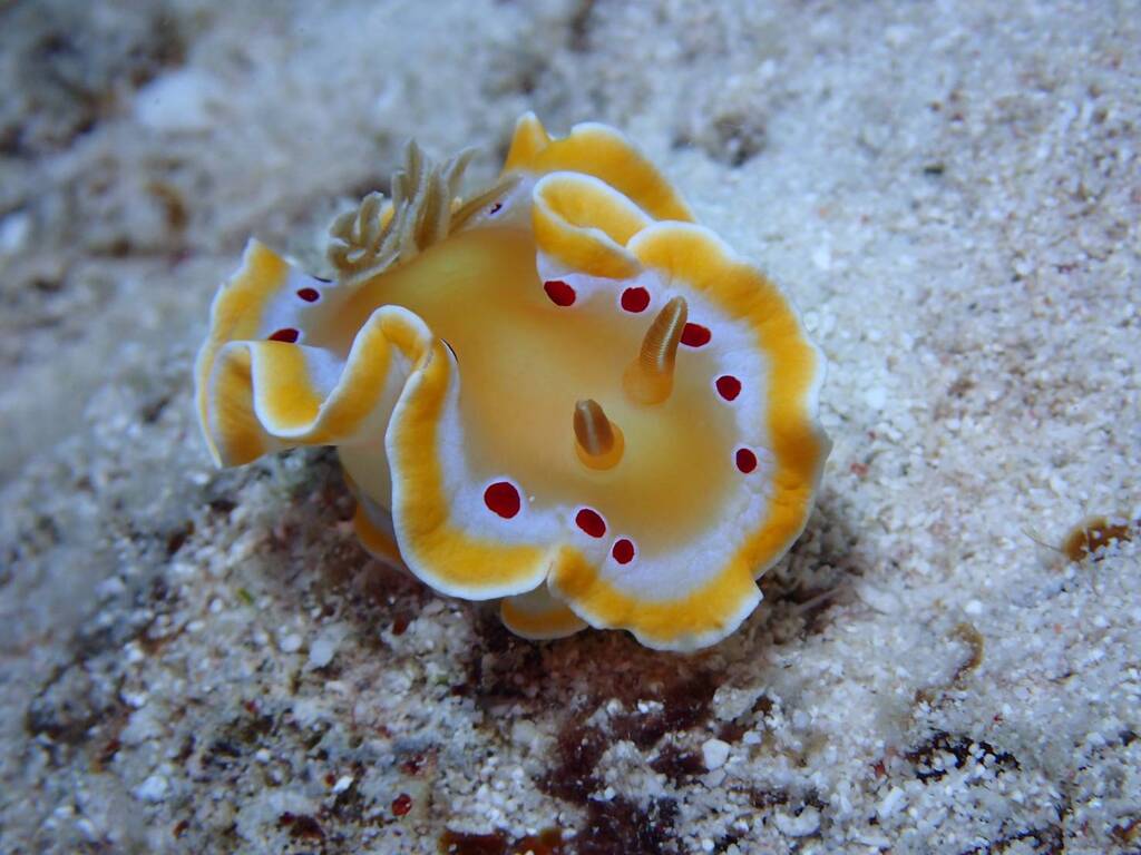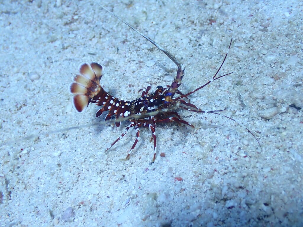 透明度の高い海に、白い砂地、真っ赤なイソバナ、カラフルな生き物