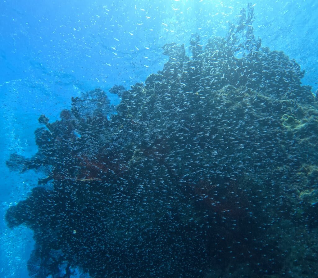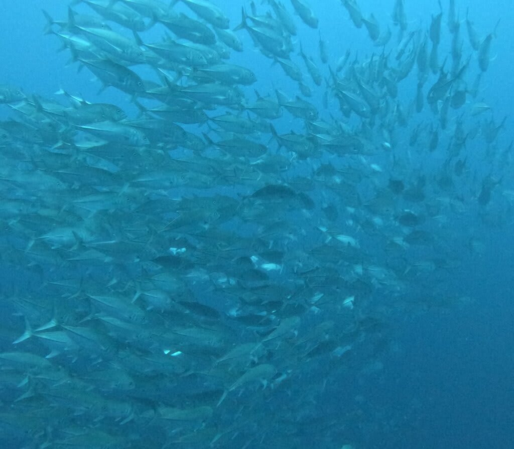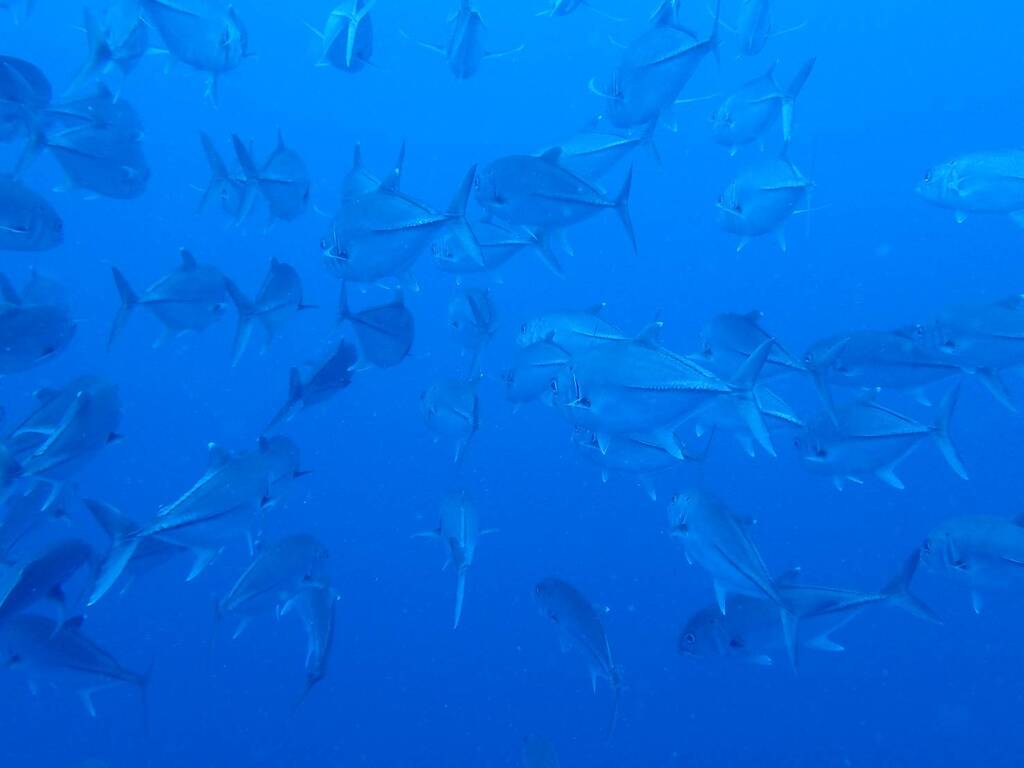 短い時間に、見事な群れ、大きなロウニンアジも見れました。