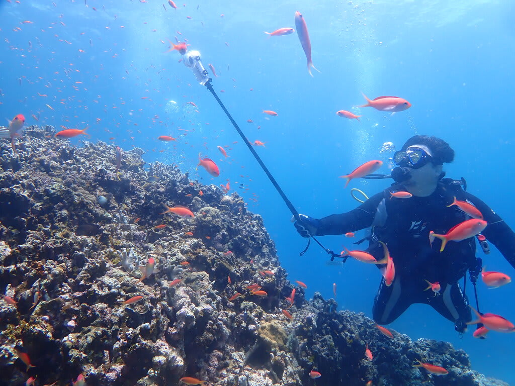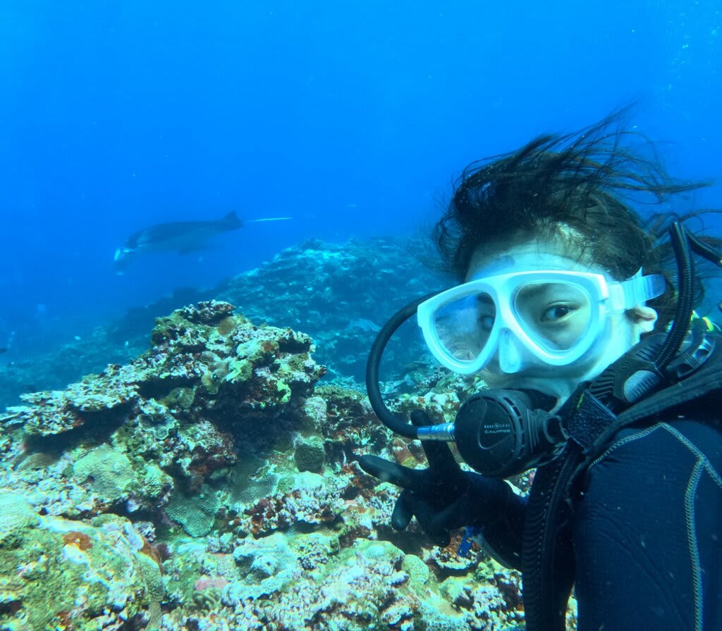 透明度が良く、優雅に泳ぐマンタの姿をしっかりと望めました。