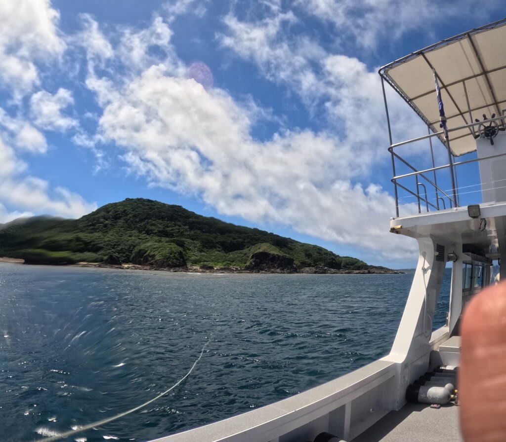 自然豊かな緑が多い島を見ながら、船の上での休憩は、至高の時の流れ。