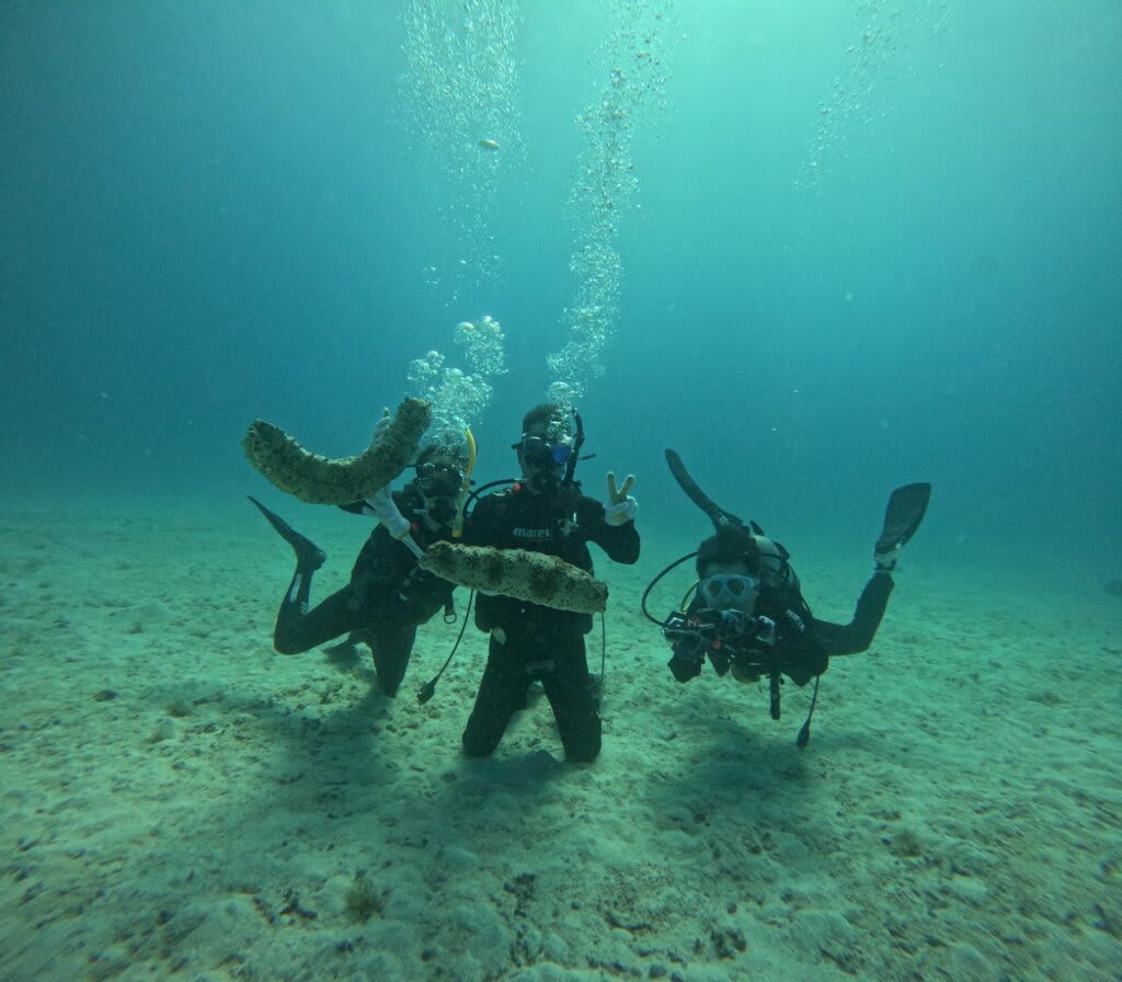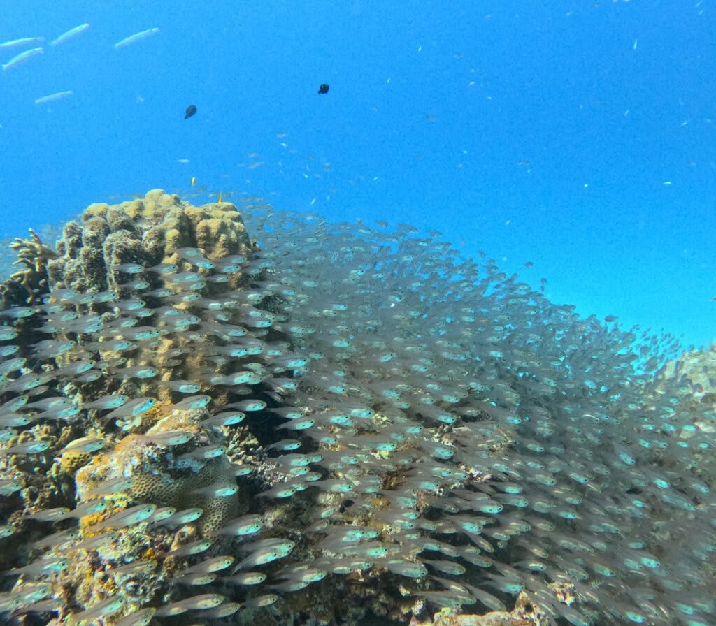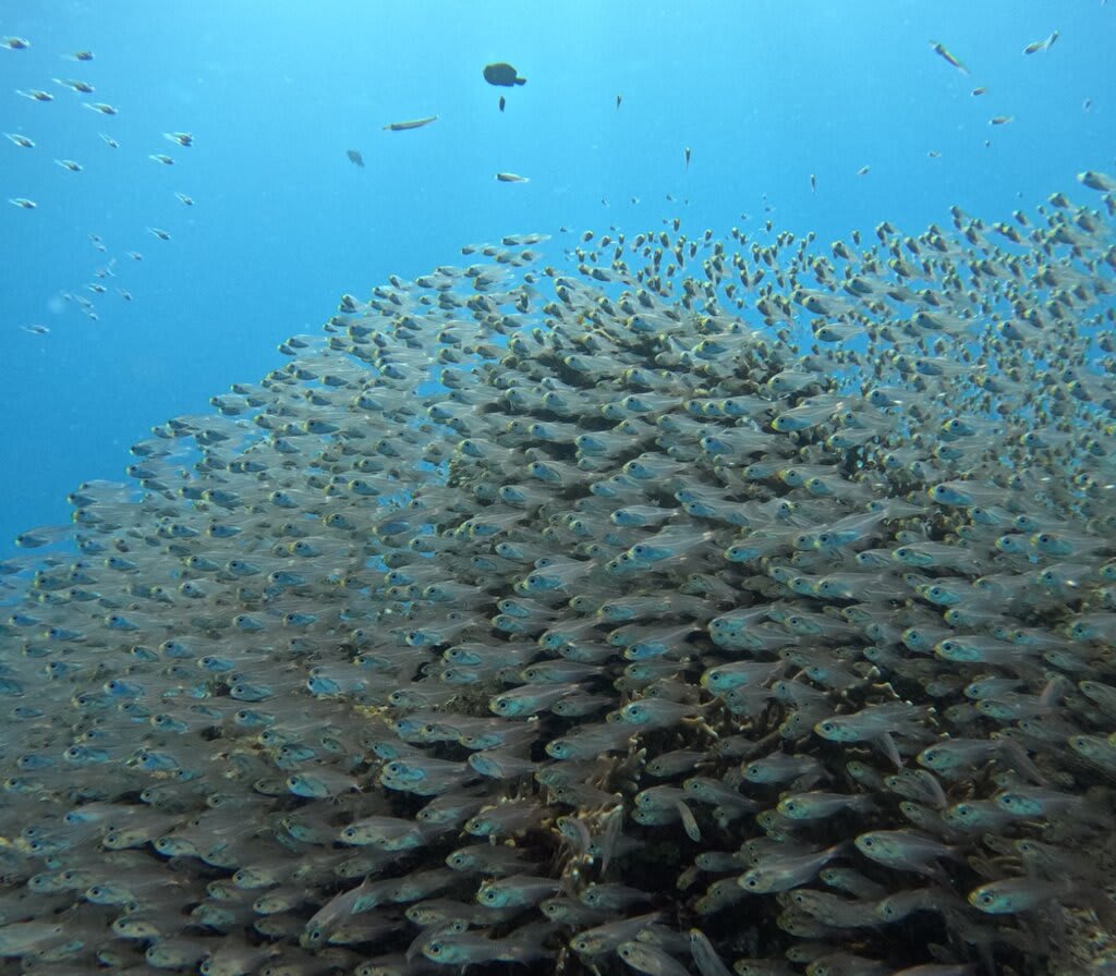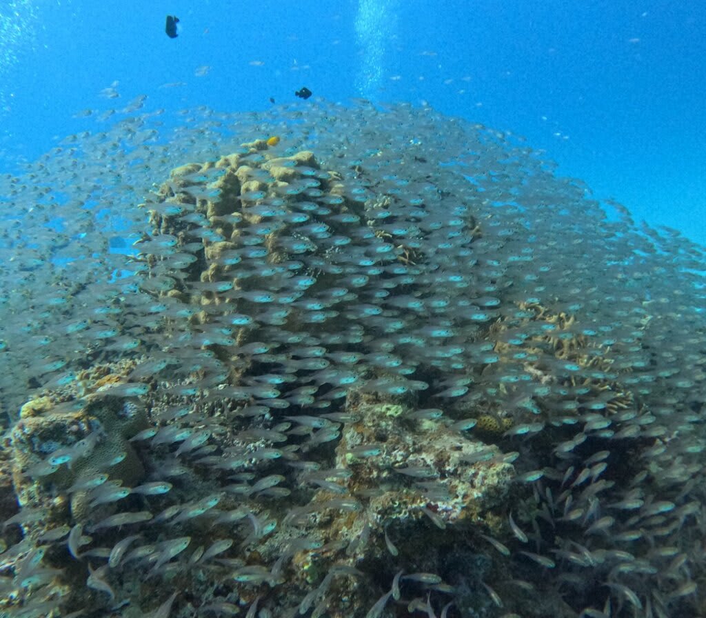 テンジクダイやキンメモドキの小魚が集まってきました。