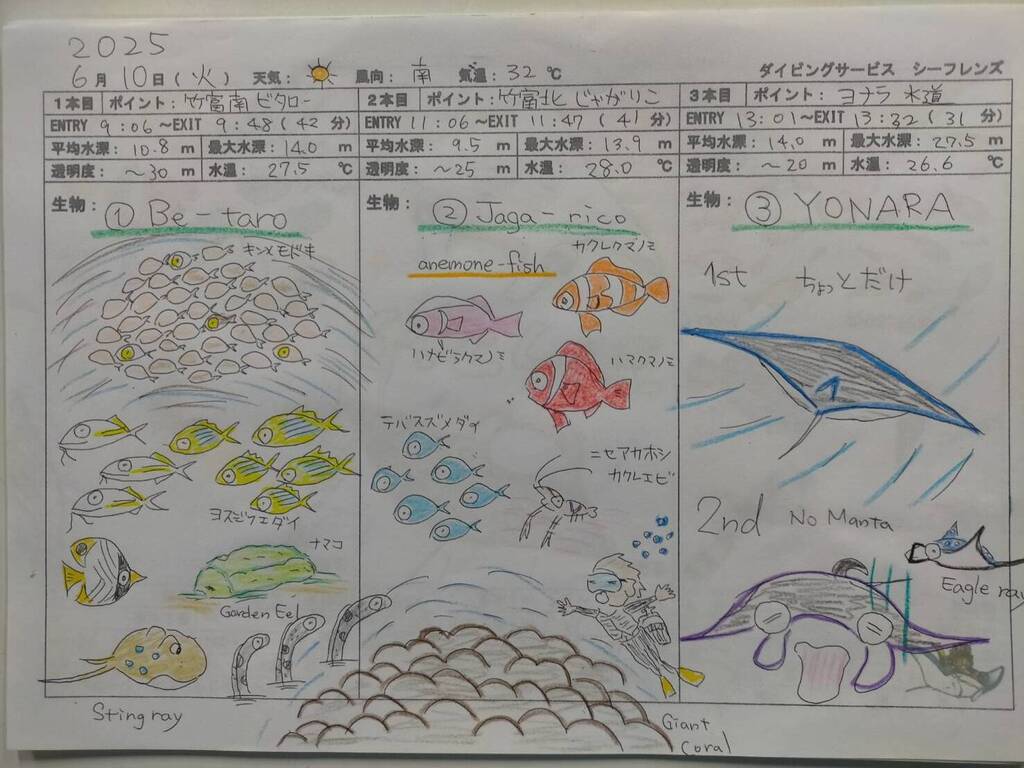 竹富島の南側、北側でそれぞれダイビング。