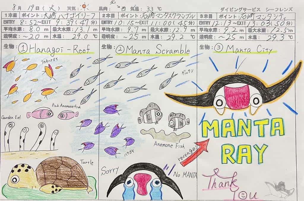 日本国内からそして海外から石垣へダイビングをしに来る目的の1つは『マンタ』