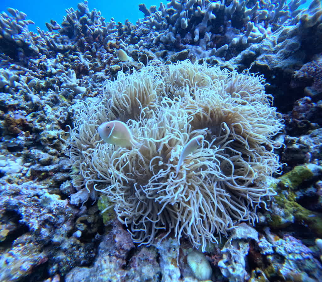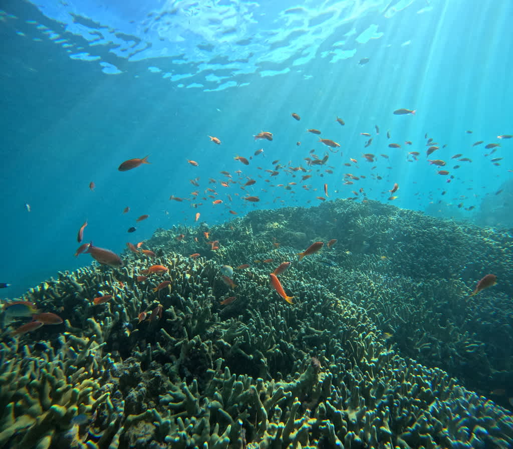 浅い場所ではサンゴとアカネハナゴイやキンギョハナダイの群れがまるで宝石のようにキラキラと💎