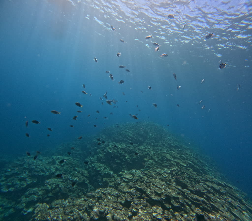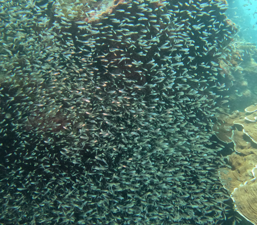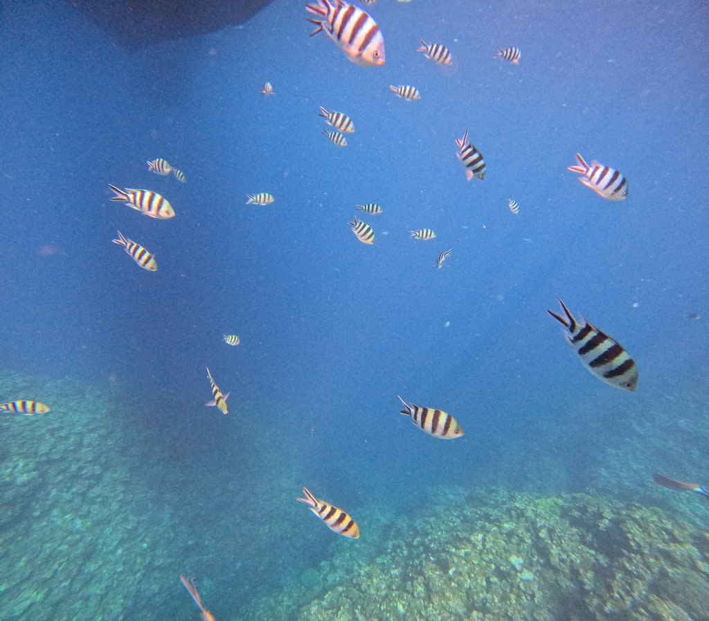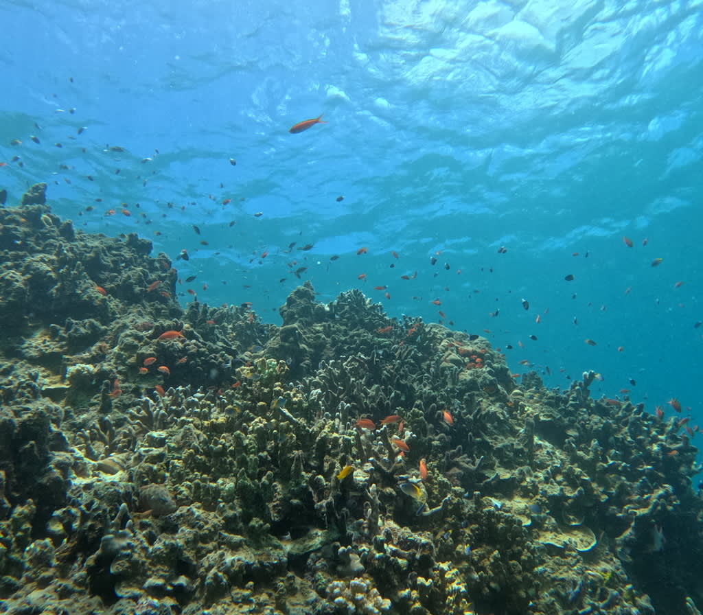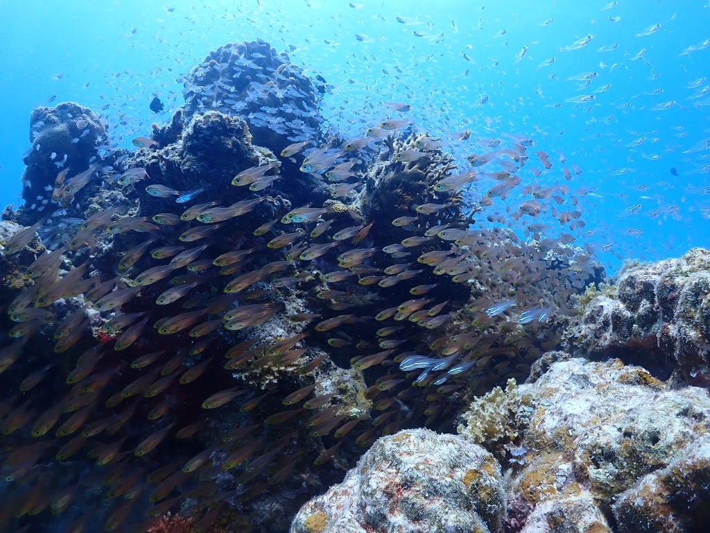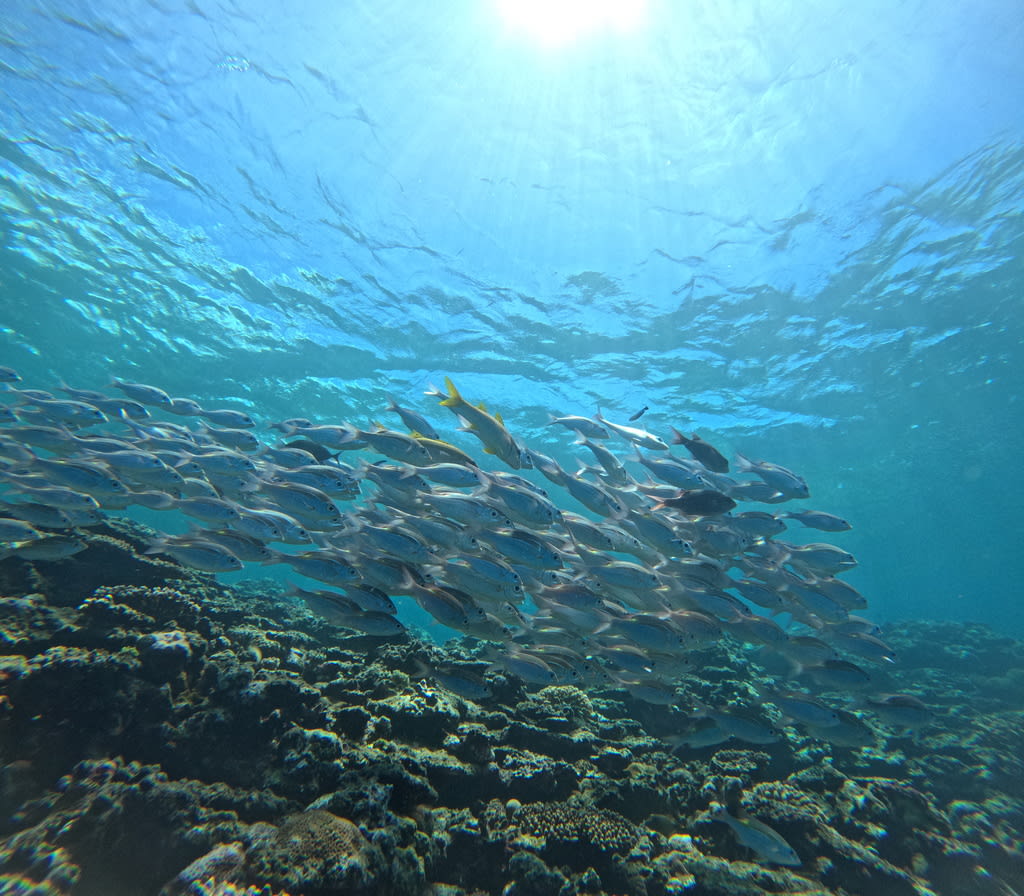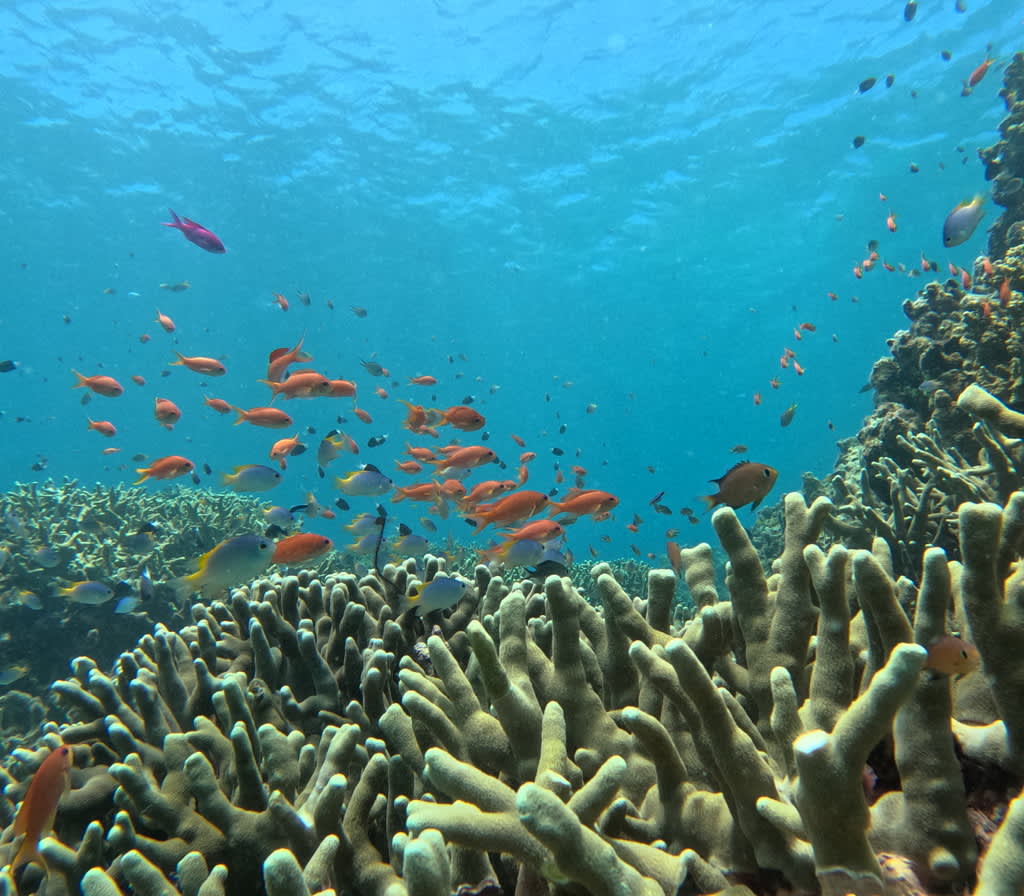 浅いので、スノーケルで魚たちが近くで見れて楽しめます。