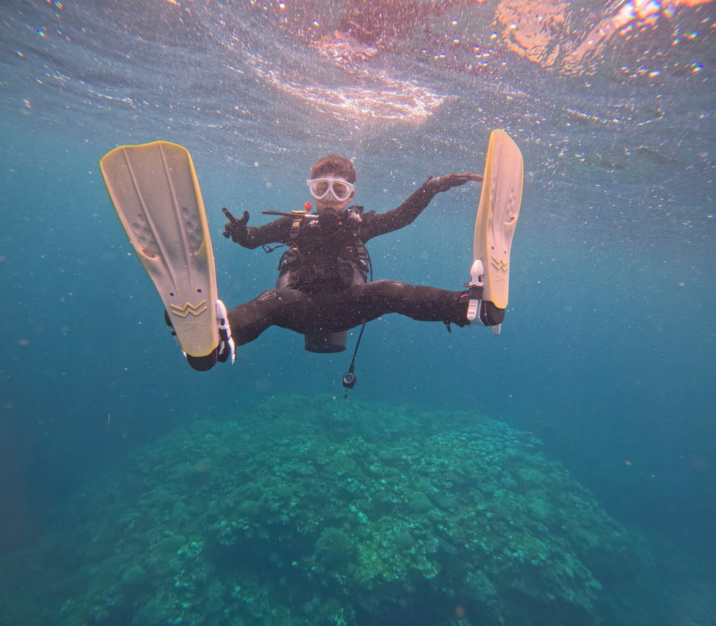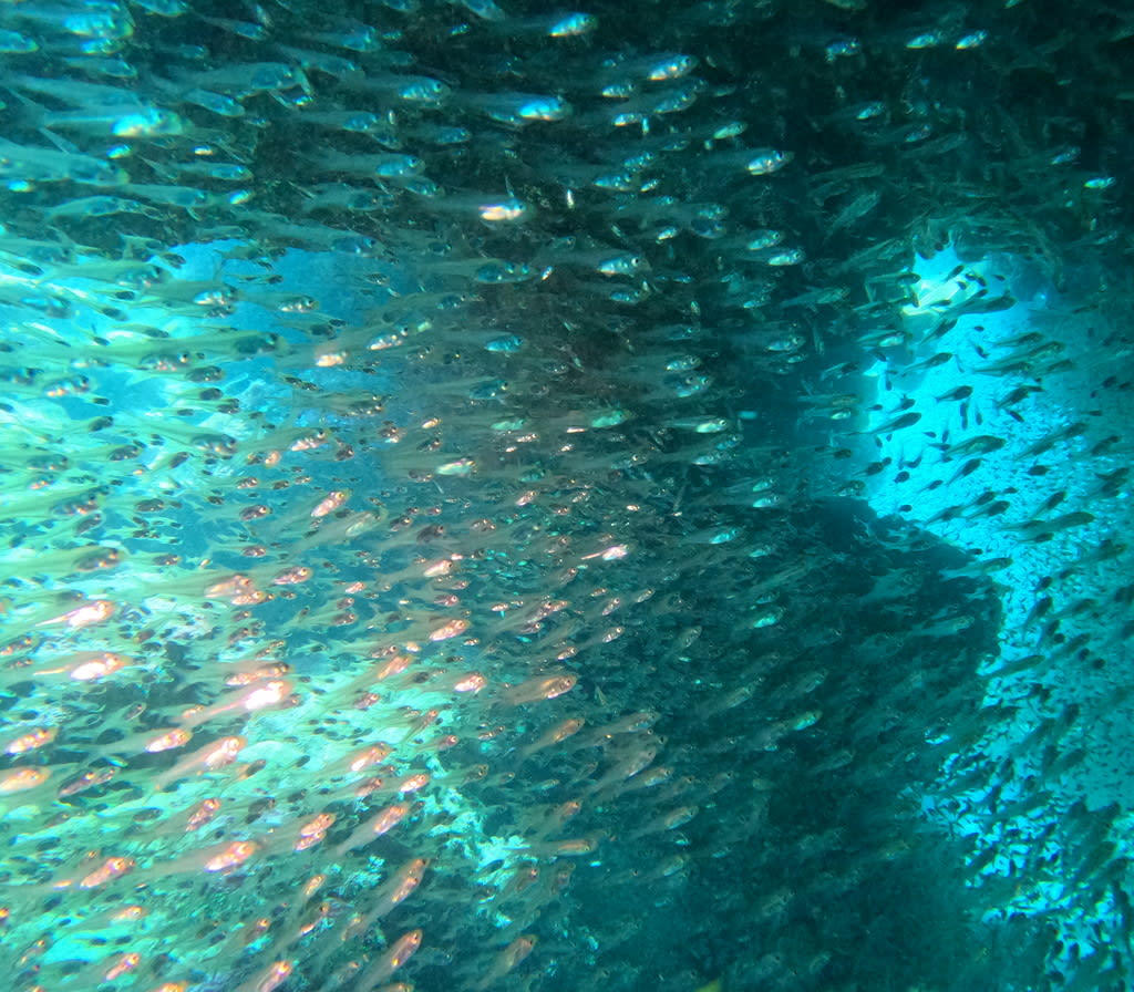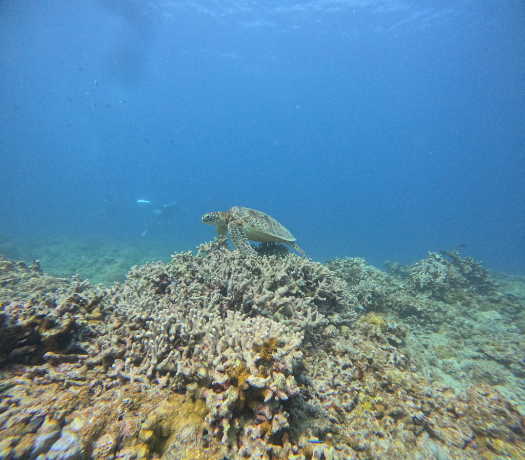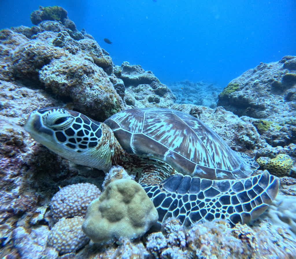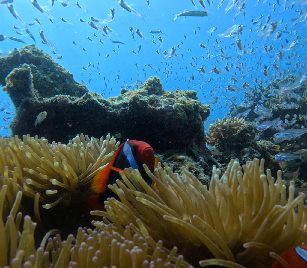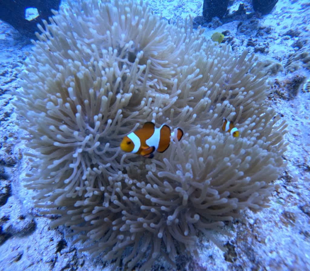 浅いので、スノーケルで魚たちが近くで見れて楽しめます。