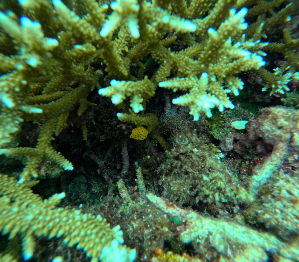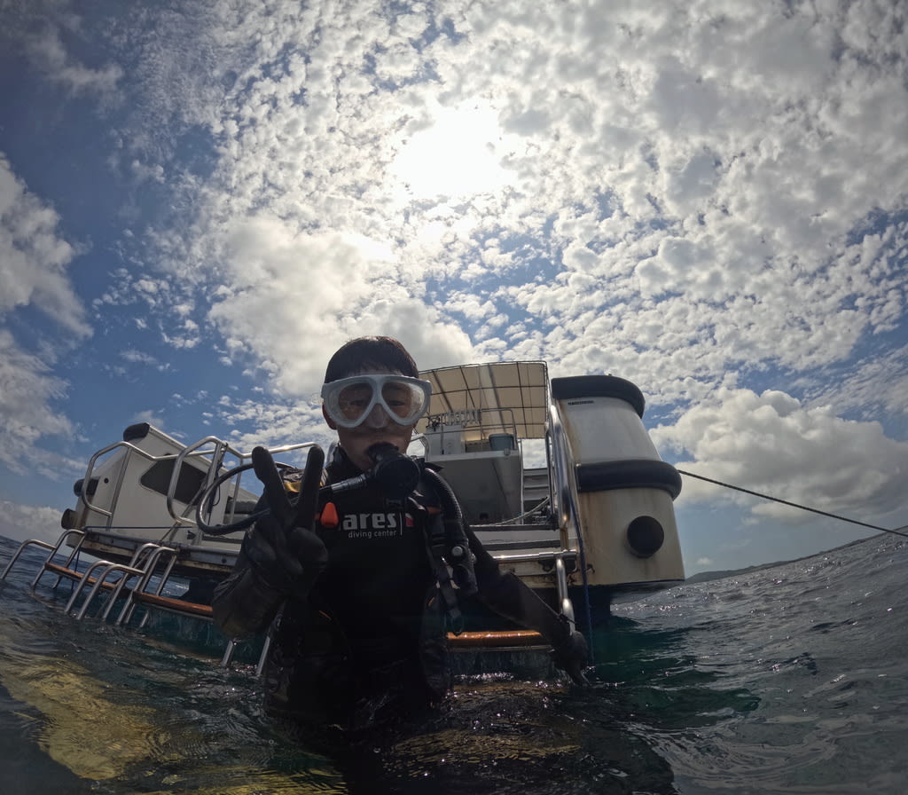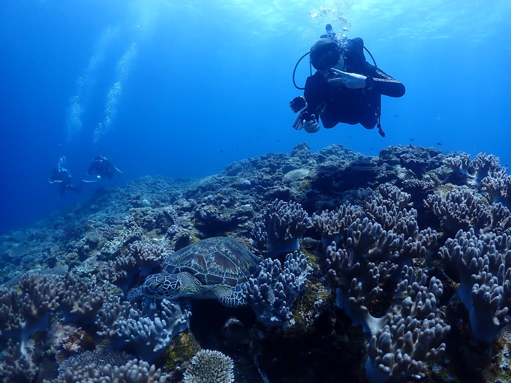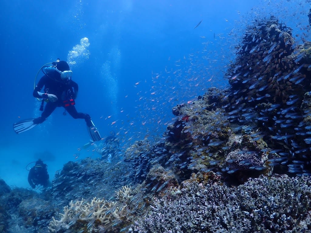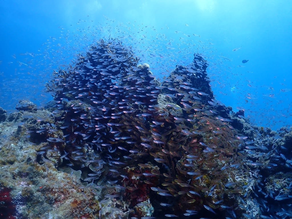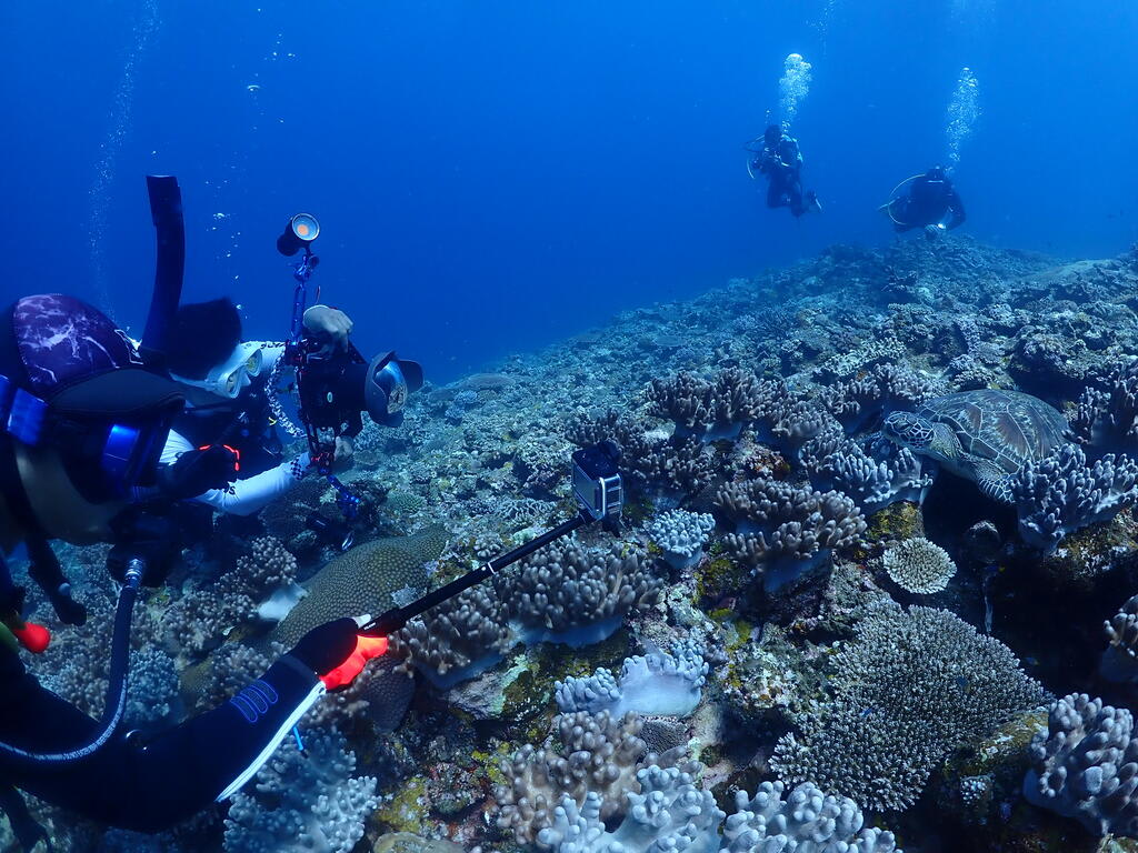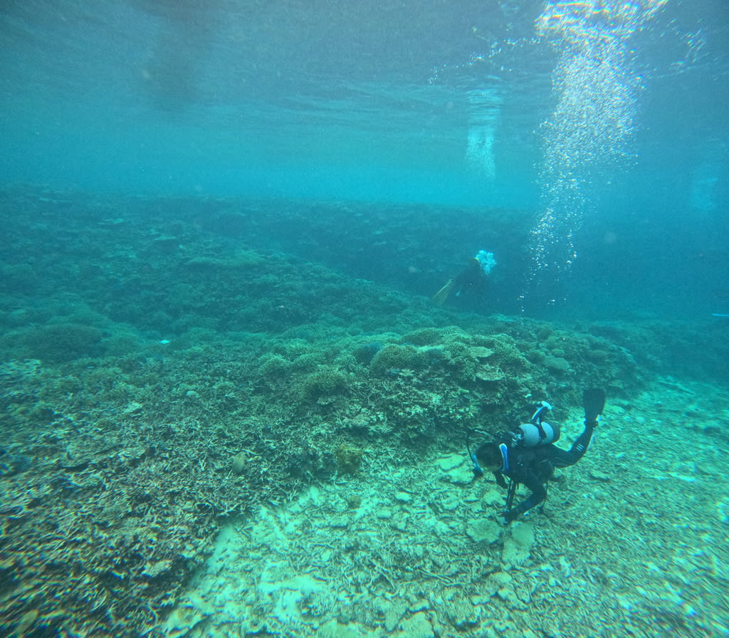 朝イチは、名蔵湾の浅瀬のサンゴのポイントへ。