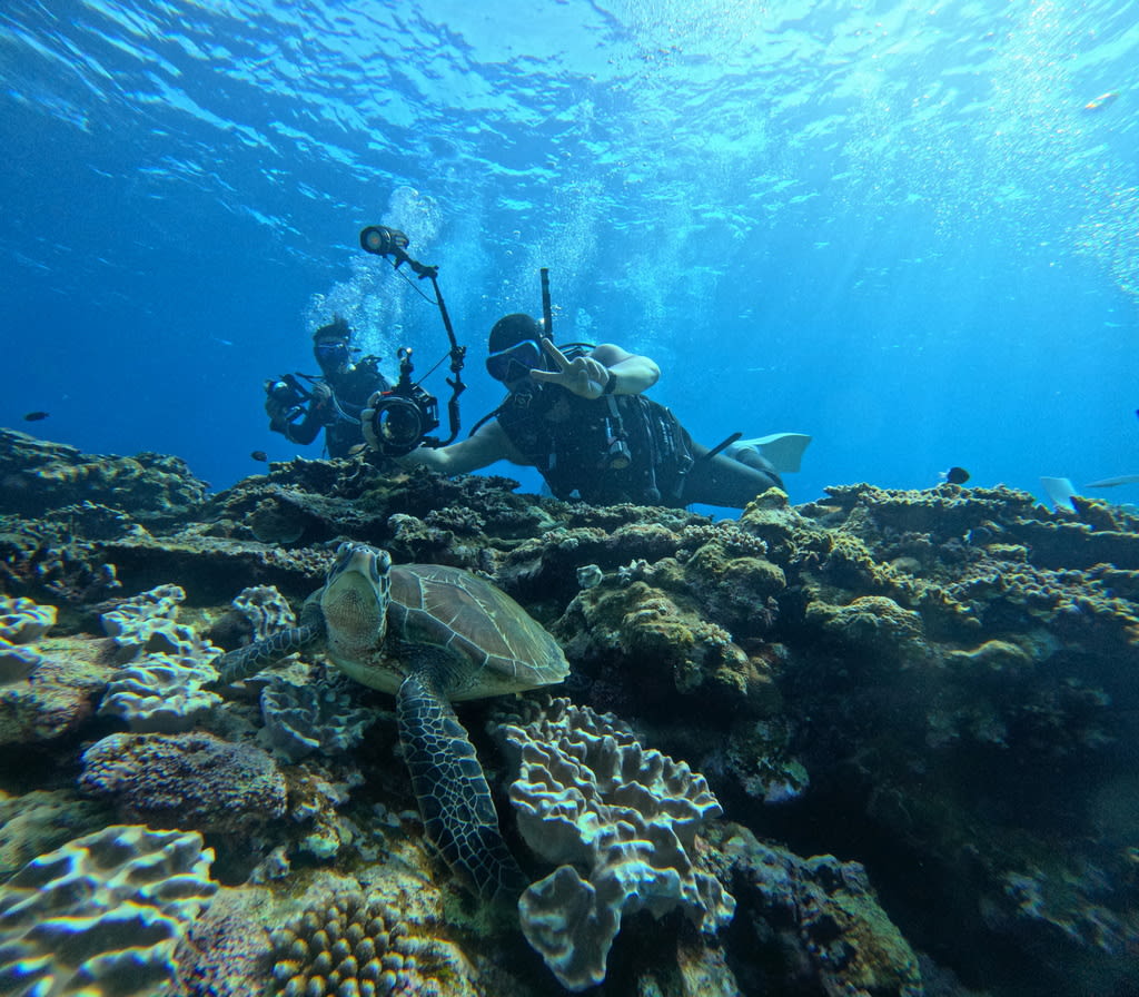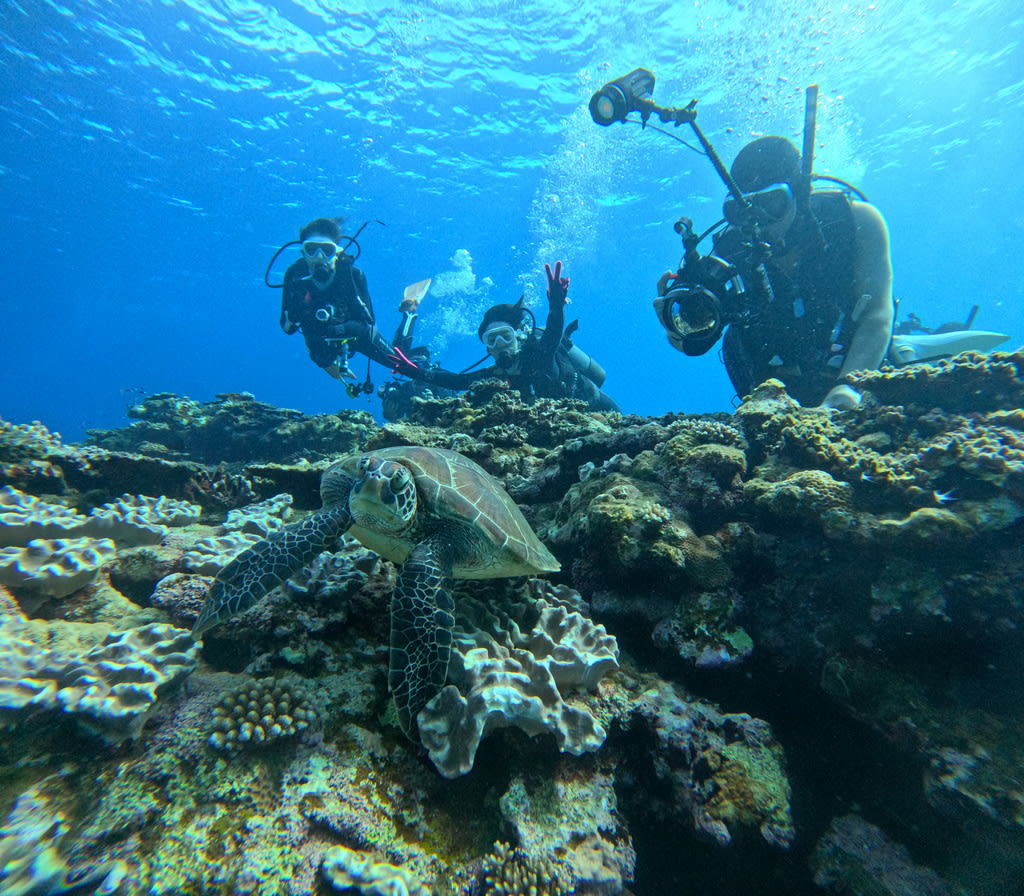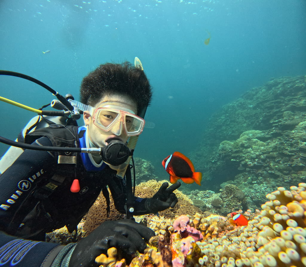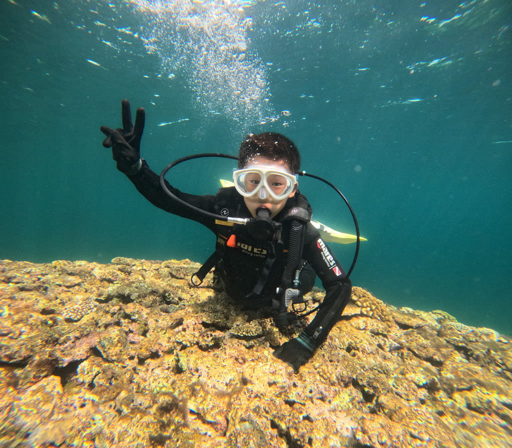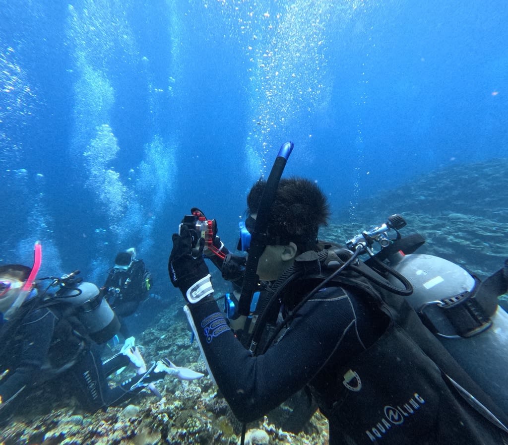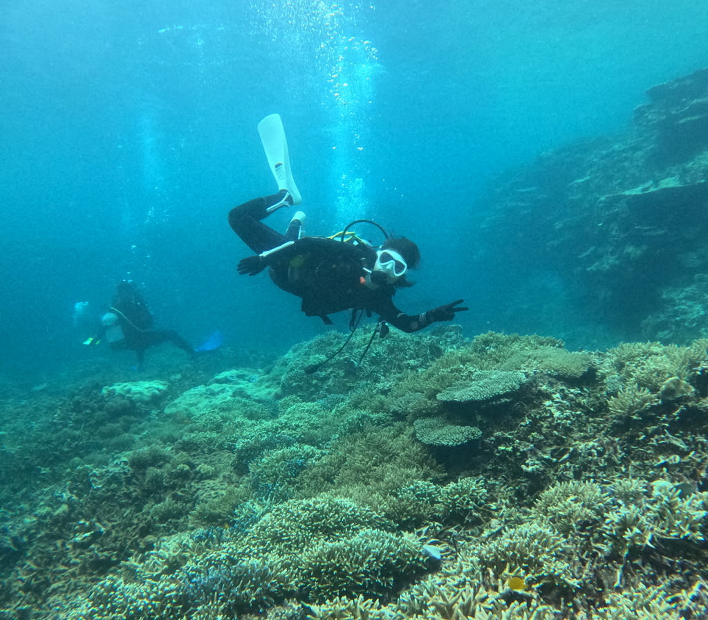 朝イチは、名蔵湾の浅瀬のサンゴのポイントへ。