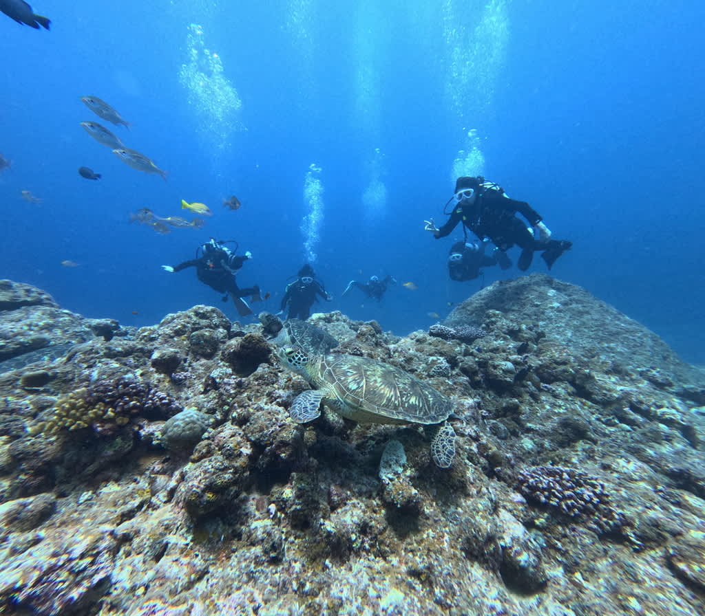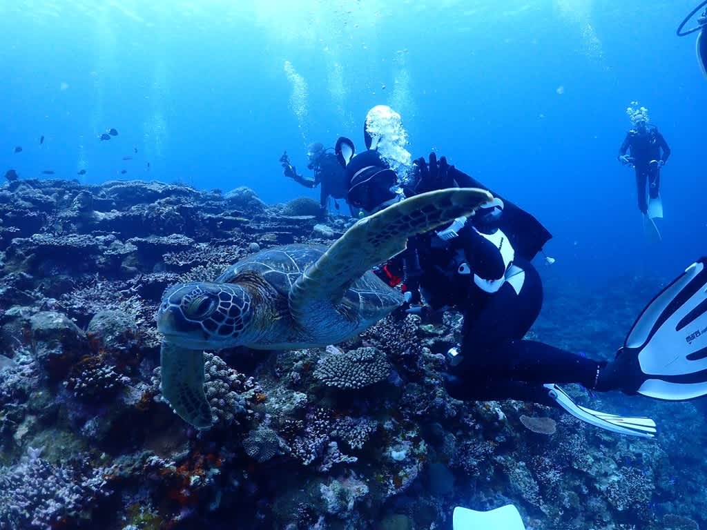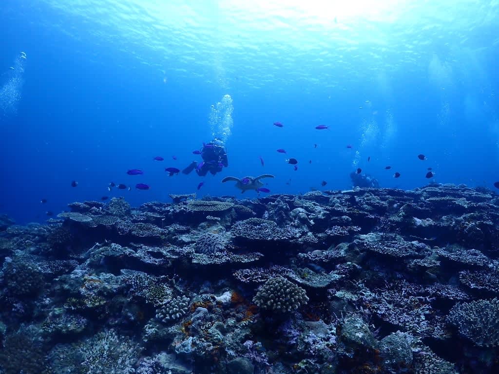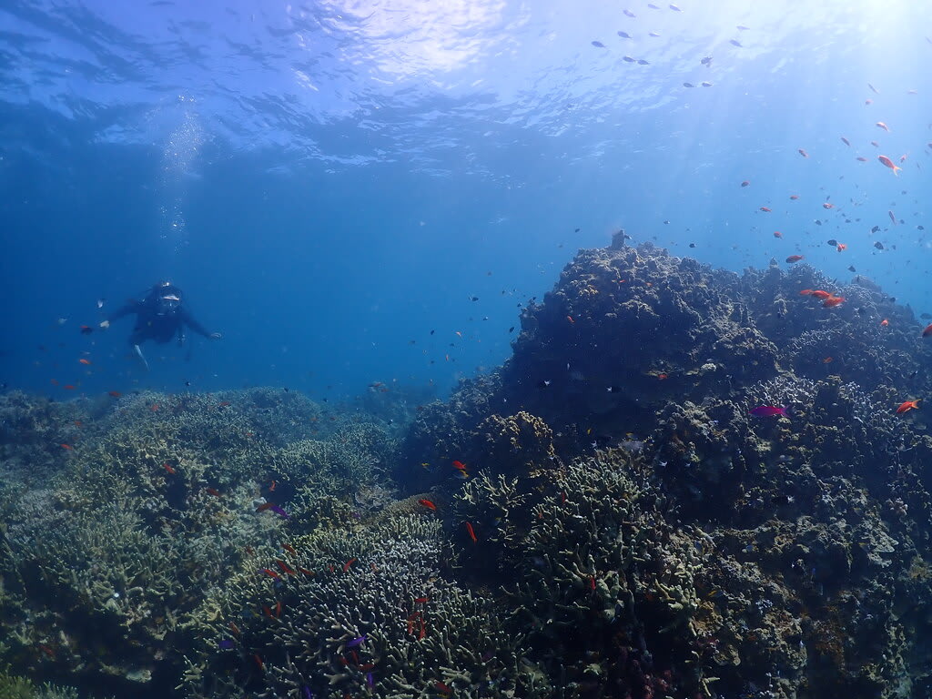 サンゴがたくさんある場所で、ダイビングを楽しみながら、