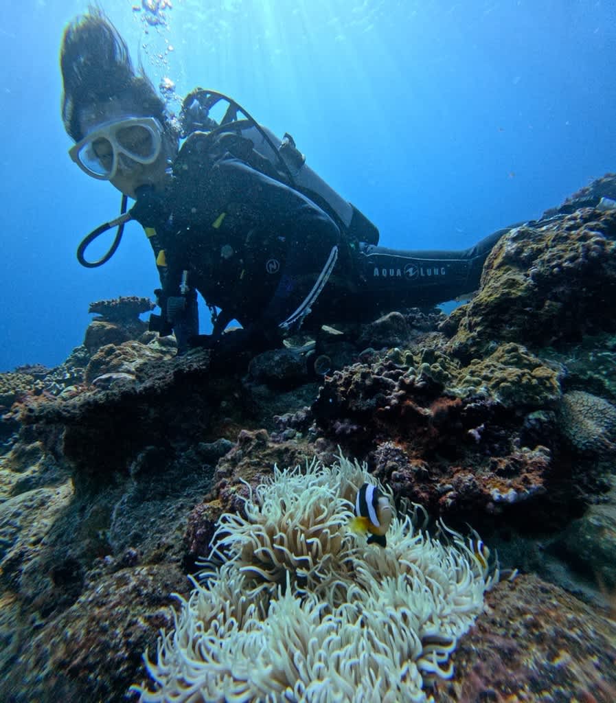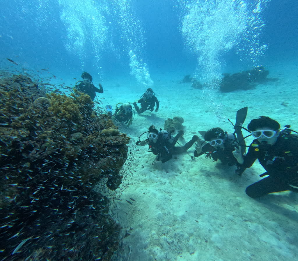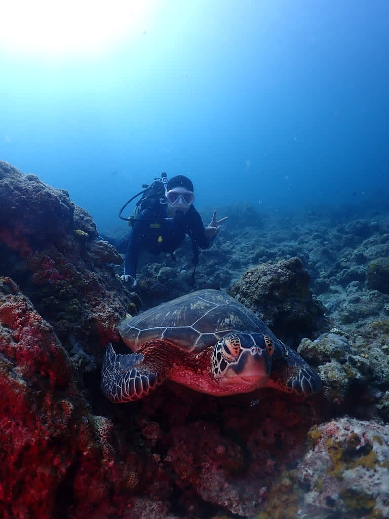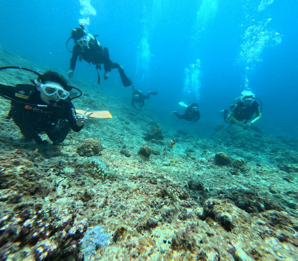 サンゴがたくさんある場所で、ダイビングを楽しみながら、