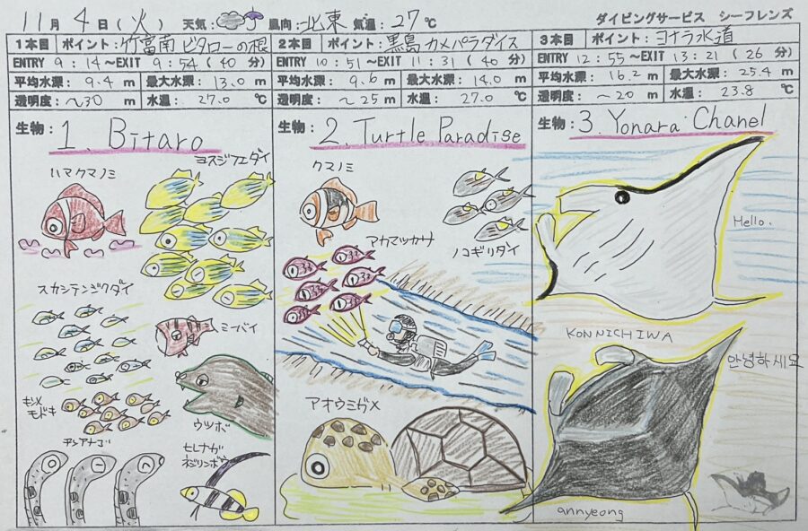 後発の日本人チームは、見た時間の長さ、マンタの数で勝りました。