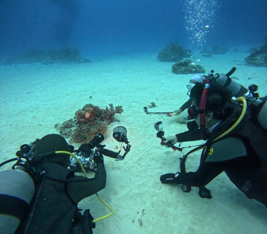 水底にベッタリ張り付いてマクロダイビングをしたり