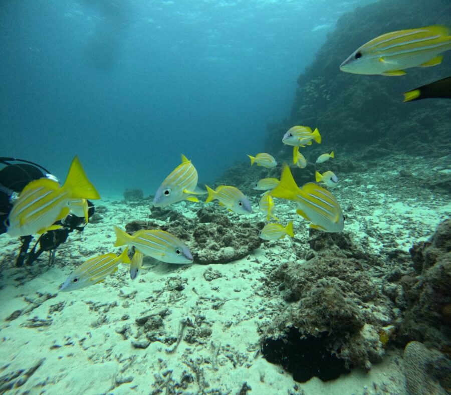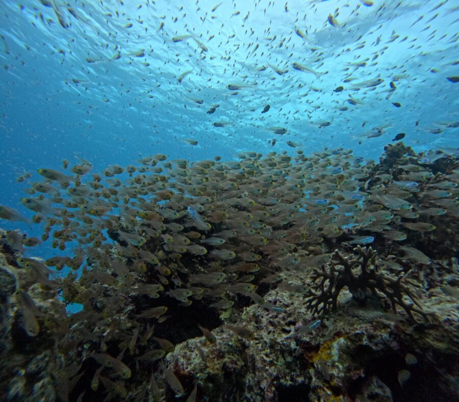 竹富では魚の群れを