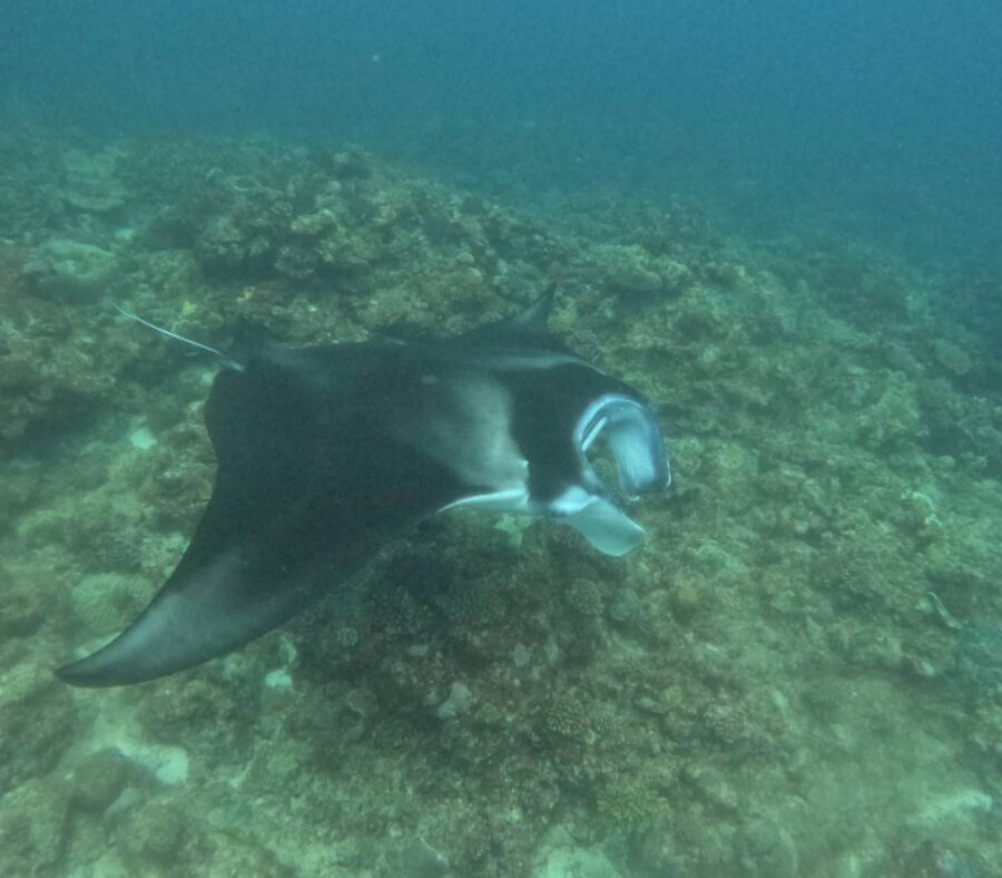 海の中が若干ニゴニゴォとしてますが、なんとしてもマンタは見ておきたい。