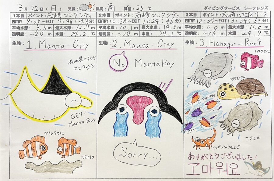 ですが、そのマンタは流れ星のようにあっという間に消えてしまいました( ̄▽ ̄;)