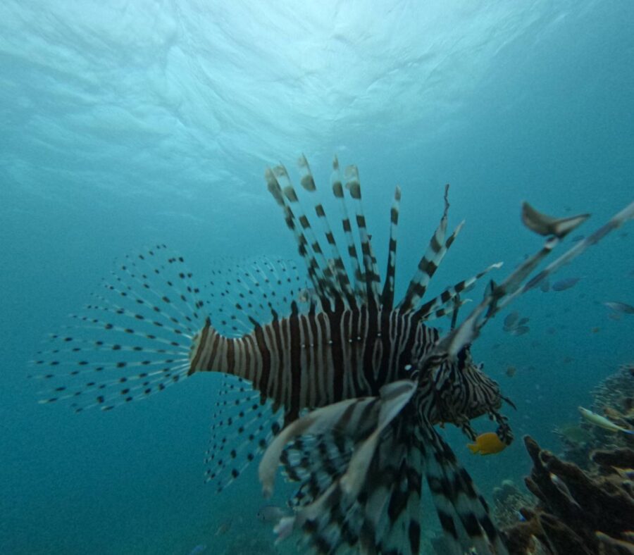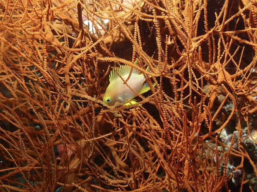 今日の天気、海況では仕方ないですが、若干透明度が劣るも、サンゴをはじめとした、多様な生き物が見れました。
