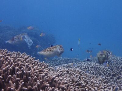 珊瑚ポイントには最近増えてきたテングカワハギも♪