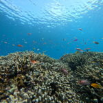 それでも、水中は穏やかでサンゴの周りは魚たちで賑わってますよ。