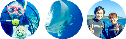 石垣島のキレイな海で講習をするので不安が少なく、講習中も周りにはキレイな魚達がいっぱいいるので、楽しく出来ますよ♪運がよければ、講習中にマンタに会えるかも!?